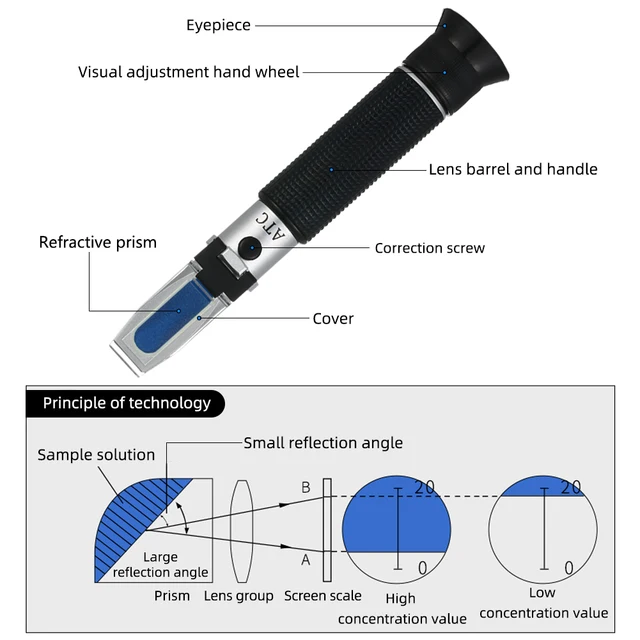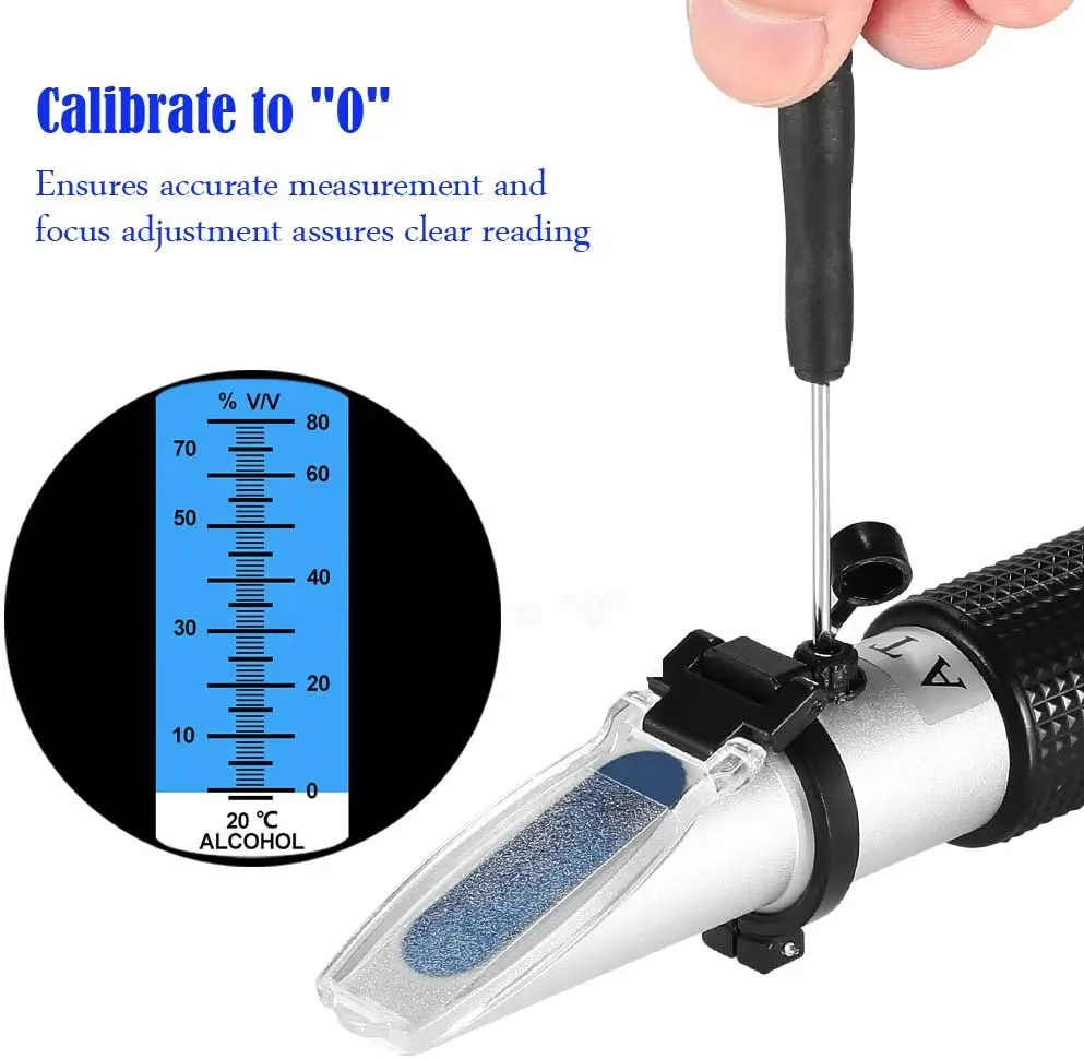Proster Rifrattometro Alcool 0-80% Con ATC Alcolometro Portatile Alta Precisione Con 3 Pipette Misuratore Contenuto Alcool Tester Percentuale Alcool Per Birra Vino