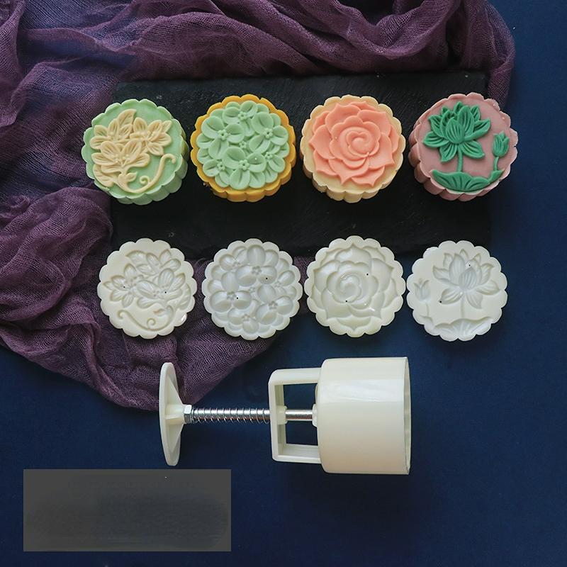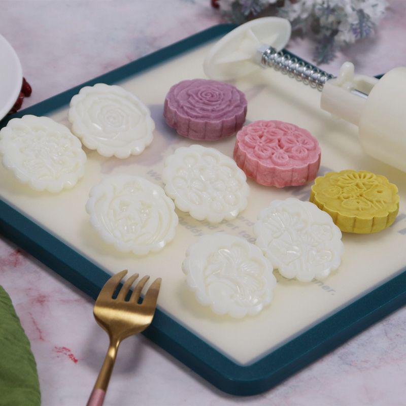 6pcs Hand Press Cookie Stamp Moon Cake Decor Barrel Mooncake Mold 50g