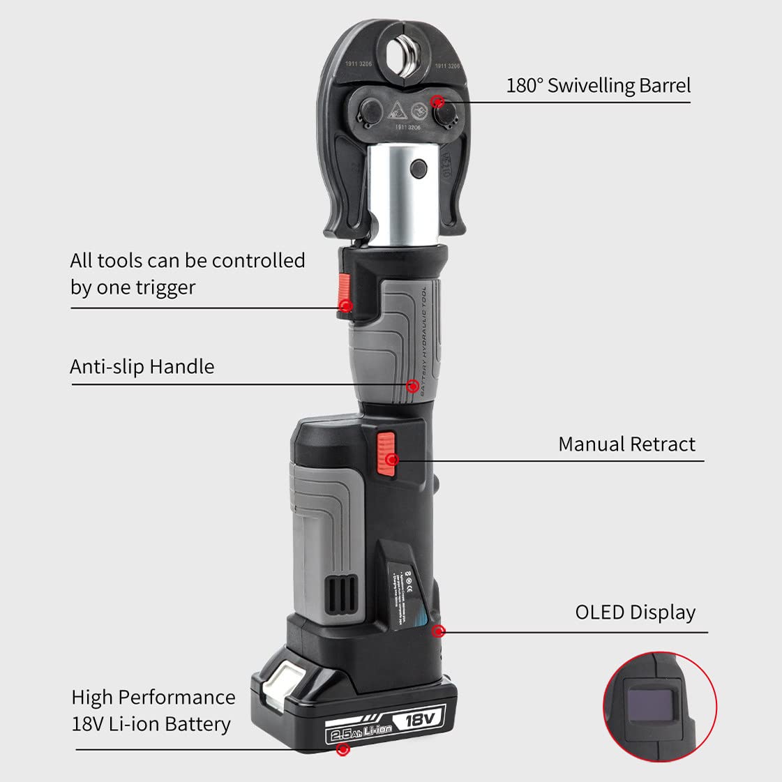 LIMEME Strumento Di Pressatura Per Tubi Idraulici A Batteria Portatile Per Crimpatura Multistrato In Rame Pex Per Impianti Idraulici, Con 3 Ganasce A Pressare/2 Batterie,2series