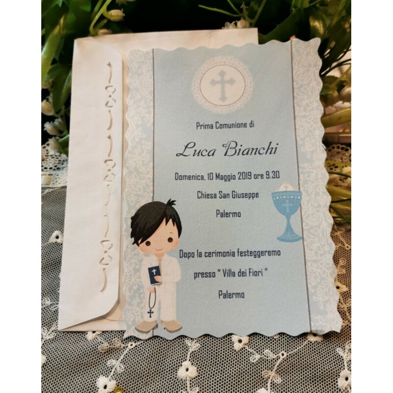 Invito Prima Comunione Bimba Personalizzato Con Busta Traforata - F