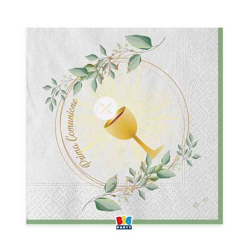 Prima Comunione Tovagliolo 25x25cm Olive Green 20pz - Trilli Party