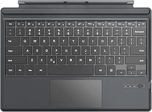 Potete utilizzare la tastiera senza preoccupazioni per lunghi periodi. Retroilluminazione LED a 7 Colori: Godetevi la retroilluminazione LED speciale a 7 colori, con 2 livelli di luminosità per scrivere comodamente in condizioni di scarsa illuminazione o durante la notte. Compatibilità: Tastiera QWERTZ italiana progettata esclusivamente per Microsoft S Surface Pro 7 Plus/Pro 7/Pro 6/Pro 5/Pro 4/Pro 3, che garantisce una perfetta integrazione con il dispositivo per una maggiore produttività Eccellente Durevolezza: Ogni tasto di questa tastiera è progettato per resistere fino a 3 milioni di pressioni, garantendo durata e resistenza nel tempo. Assicuratevi di rimuovere la pellicola dal touchpad prima dell'uso. Se il Bluetooth si disconnette automaticamente dopo un periodo di inattività, ricollegatevi semplicemente). (Nota: Per attivare il touchpad, premete Fn+Spazio. 1 7 colori retroilluminata 2 3 livelli di luminosità Porta di ricarica di tipo C 1 Connessione Bluetooth 2 Ampio touchpad Tastiera Surface Pro 7 MoKo Keyboard Case For Microsoft Surface Pro 7 Plus/Pro 7/ Pro 6/ Pro 5 Tastiera Mac