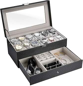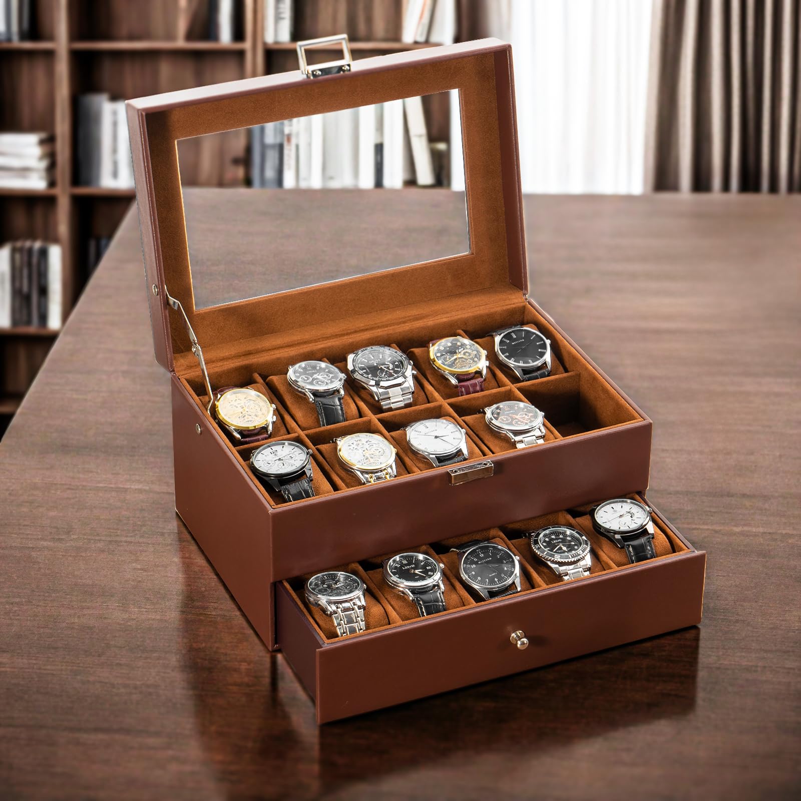 ProCase Porta Orologi Uomo a 20 Posti, Scatola Orologi in Pelle, Custodia Orologi con Coperchio in Vetro, Idea Regalo Portagioie Uomo Organizer per Orologi con Cuscini Rimovibili -Marrone La robusta finestra di vetro sulla parte superiore consente agli orologi a energia solare di rimanere carichi e di visualizzare bene l'orologio La scatola per orologi a 2 Livelli con 20 Posti, offre un ampio spazio per organizzare la vostra collezione di orologi ProCase Scatola per orologi in legno laccato, lussuosa ed elegante. Dimensioni: 29,5 x 21 x 15,5 CM. Porta Orologi Con Rotatore Automatico ProCase Porta Orologi Uomo In Legno A 6 Posti, Scatola Porta Orologi Con Coperchio In Vetro, Custodia Orologio Portagioie Uomo Regali Per La Festa Del Papà/Regali Per Lui -Espresso Cofanetti Porta Orologi Custodia in legno di ottima fattura con esterno laccato al pianoforte e fodera in scamosciata, lussuosa ed elegante