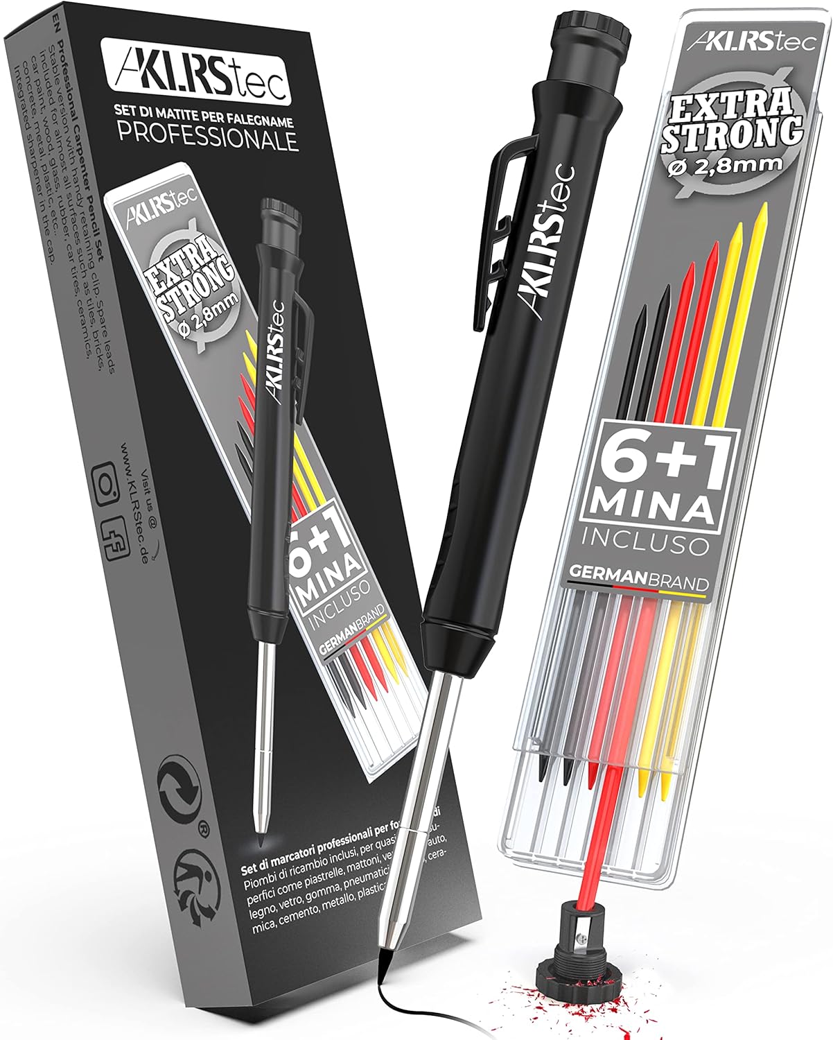 Matita Meccanica Matita Professionale Per Falegname Incluso 7 Mina + Temperino Matita Da Falegname Migliore ✏️Set conveniente: la confezione include 1 pennarello nero a foro profondo con punta lunga, 1 cappuccio per penna e 7 ricariche sostitutive, i colori di ricarica sono: nero, rosso, giallo, la larghezza è 2,8 mm. Sconto Matita Infinita Wzone Set Di Matita Da Carpentiere Solida Per Cantiere Falegname Con 6 Conduttori Giallo Grigio Rosse Affilatrice Incorporata Per Strumento Di Marcatura Lavorazione Del Legno Pennarello Indelebile Nero ... Informazioni sulla nostra Possono aiutarti a contrassegnare aree diverse ✏️Sostituisci facilmente le ricariche: La mina in grafite è facilmente sostituibile e resiste ad una pressione fino a 2 kg grazie al pratico meccanismo a spinta. ✏️Portatile e pratico: la penna per la lavorazione del legno ha una clip per denti che può essere fissata saldamente e un temperamatite incorporato, Possono essere rapidamente e facilmente attaccati direttamente alla tasca dei vostri pantaloni, comodo e pratico, adatto per l'uso in qualsiasi scena Inoltre, sono impermeabili e insolubili, è uno strumento affidabile per falegnami, ingegneri, artigiani e professionisti dell'edilizia. 👷ADATTO A TUTTE LE SUPERFICI: La nostra mina nera è realizzata in grafite, adatta per superfici chiare come legno, pietra, ecc.