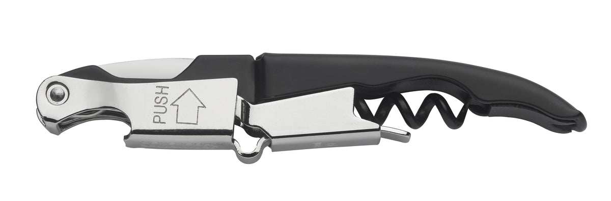 13 cm. Colore: Nero. Materiale: Metallo e Plastica ABS. Dimensioni: 15.00 x 3.50 x 2.10 h cm. (confezione), 13.30 x 2.70 x 1.50 h cm. (cavatappi chiuso). Note I punti di forza: - doppio appoggio brevettato Coutale - lama tagliacapsule Colore: NERO Cavatappi Doppia Leva Professionale Cavatappi Sommelier Premium ROERO Cavatappi Professionale Per Sommelier Legnoart Cavatappi Professionali Sommelier Tra i migliori levatappi sommelier a doppia leva sul mercato e portato alla ribalta da Philippe Bernède, oggi arricchito dalla lama Taglia Capsule integrata nel corpo del cavatappi. Coutale - Cavatappi Sommelier Doppia Leva - Modello ORIGINAL COUTALE - Colore:Nero - L’estrazione del tappo si effettua in due tempi, grazie al semplice appoggio del braccio centrale, che procura una sensibile riduzione dello sforzo.