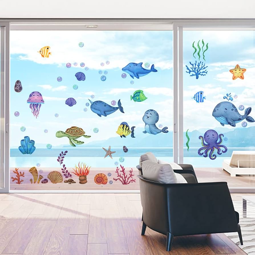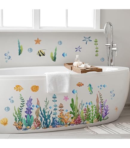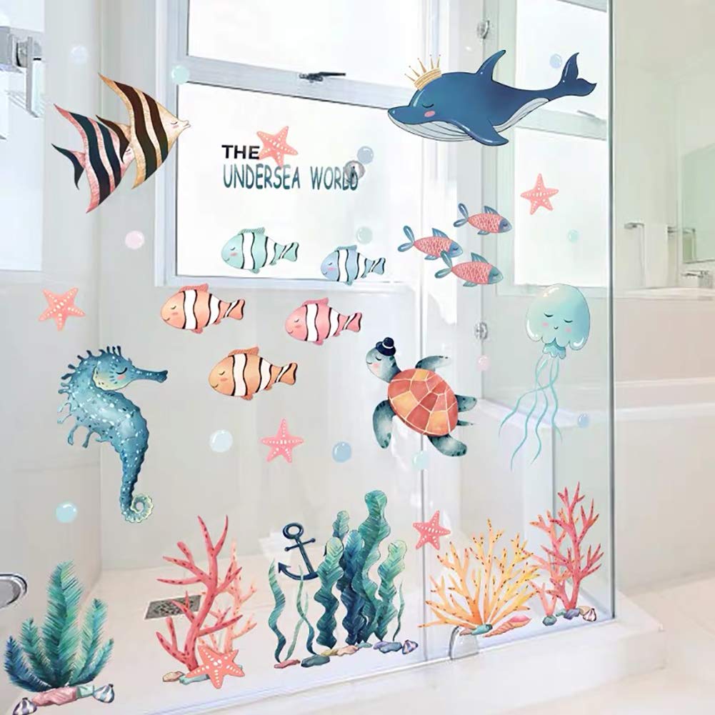 Impermeabile Bagno Cucina Adesivo Da Parete Oceano Acqua Profonda Mare Decorazioni Per La Casa Adesivi Delfino Pesce Decalcomania Decorativa Murale