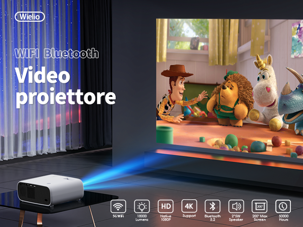 Durante un film o un evento sportivo, l'utente può godere di un'esperienza sonora di altissimo livello senza disturbare gli altri. 2025 Nuovo proiettore , 1080P con supporto 4K, videoproiettore Bluetooth e WiFi, mini proiettore ad alte prestazioni, compatibile con iOS/Android (nero Questo proiettore WiFi supporta un facile mirroring di dispositivi iOS e Android tramite WiFi wireless, offrendo agli utenti una comoda esperienza di proiezione. 1 Supporto 4K 2 18000 lumens 3 HIFl stereo 4 50000 ore 1 Intrattenimento domestico 2 Cinema all'aperto 3 Ufficio efficiente 4 Giochi di società 5 Esercizio yoga Le connessioni multiple (HDMI, USB, AV, TF, VGA e presa per cuffie da 3,5 mm) garantiscono la compatibilità con un'ampia gamma di dispositivi e aumentano la comodità dell'utente. Questo permette all'utente di godere di un'esperienza sonora impressionante durante la visione della TV. La sua tecnologia LCD di ultima generazione consente un livello di colore NTSC fino al 90%, migliorando in modo significativo la resa cromatica dell'immagine. Il proiettore supporta dimensioni di proiezione da 35 a 200 pollici, in modo che gli utenti possano sperimentare un'immagine cinematografica in qualsiasi stanza: sia per l'intrattenimento domestico che per le attività all'aperto, questo dispositivo offre immagini perfette. L'alta risoluzione e la qualità dettagliata delle immagini danno allo spettatore la sensazione di essere al cinema. Proiettore Stelle Soffitto 2025 Nuovo Proiettore Android Con Messa A Proiettore 4k Il proiettore offre una risoluzione nativa di 1080p e supporta la riproduzione di video 4K. Gli utenti possono proiettare contenuti su un grande schermo in pochi secondi per visualizzare video, giochi o documenti senza complicati cavi di collegamento.