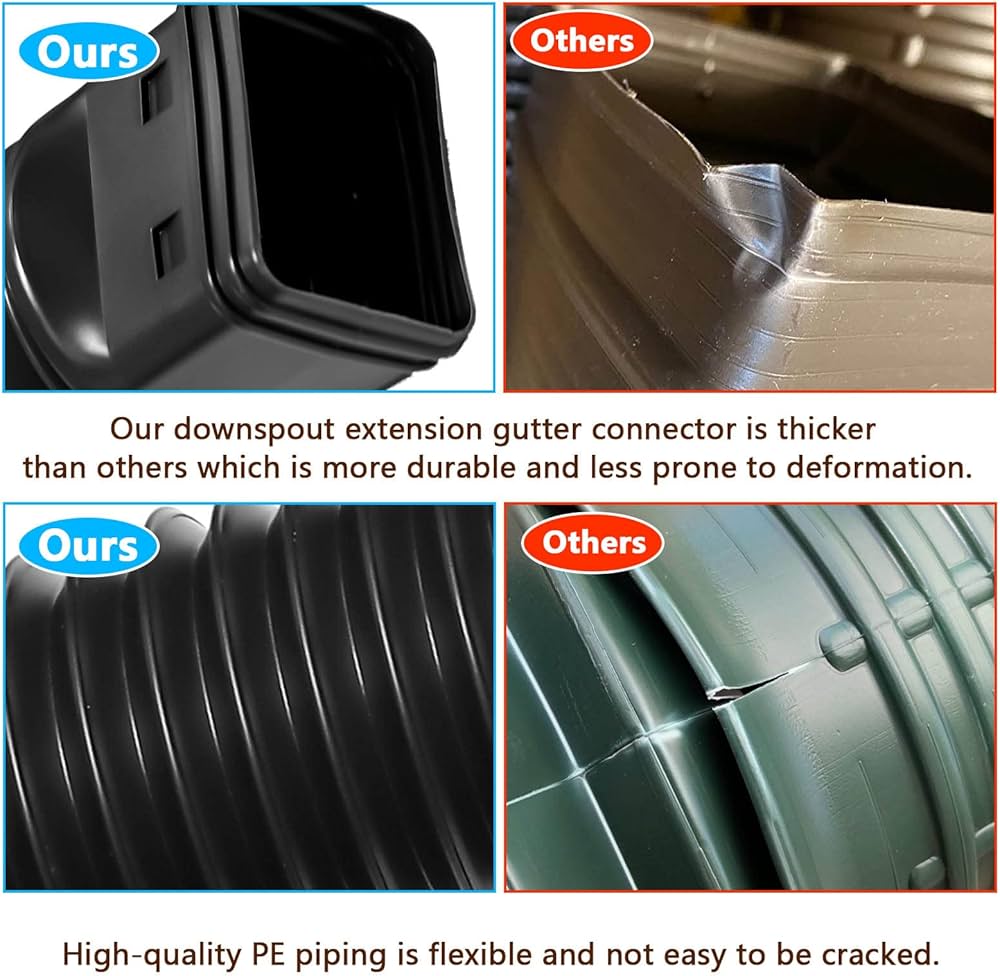 Rimarranno sempre al loro posto, il che ti porterà un prato e un cortile puliti. Il design staccabile lo rende facile da piegare e mantenere la forma, adatto per l'ambiente complesso all'esterno. E si piega facilmente intorno agli ostacoli Il nostro connettore per slot di estensione del pluviale è più spesso di altri connettori, più durevole, meno soggetto a deformazioni, buona elasticità e meno soggetto a crepe. Il maltempo (come tempesta, neve) non lo influenzerà né lo danneggerà. Può essere sepolto sottoterra. Resisteranno alla pioggia e non scivoleranno via facilmente. Se hai ricevuto il nostro prodotto danneggiato o hai altre domande, ti preghiamo di contattarci per il rimborso o la sostituzione. 【Installazione rapida】 Questa estensione fai-da-te non richiede tagli o rifiniture e un adattatore rimovibile consente di collegarla rapidamente e facilmente a un tubo di scarico esistente. Puoi avvitare questi estensori del pluviale al tubo di scarico. Goditi prati e cortili più puliti, questa economica manica di prolunga per pluviale aiuta a prevenire allagamenti, erosione e costose manutenzioni. Estensione Grondaie Estensibili Prolunga Per Grondaia Prolunga Flessibile Per Grondaia Connettore Per Grondaia Downpipe - AliExpress Estensioni Per Grondaia che ti aiuterà ad estendere il pluviale per proteggere le fondamenta della tua casa e del tuo giardino. 【Mantieni il terreno asciutto】 L'estensione del tubo di scarico della grondaia può facilmente estendersi da 20 a 59 pollici per deviare l'acqua piovana indesiderata dal terreno quando è collegata al tubo di scarico.