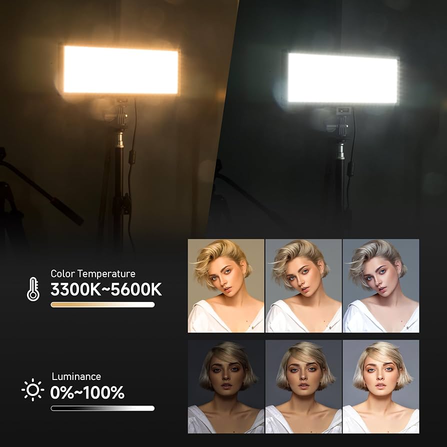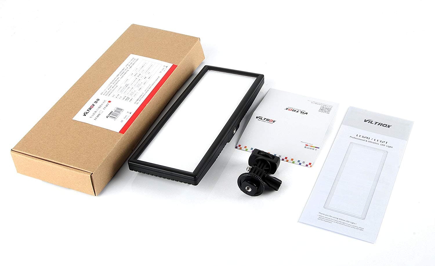 Due tipi di modalità di alimentazione: batteria Li-batteria NP-F550 / F750 / F960 sereis (include una batteria NP-F550 e caricatore USB), interfaccia generale 12V / 2A, DC005 (non inclusa) Shop VILTROX L132T 0.78/2cm Ultra Thin CRI95 5600K/3300K LED Video Light Dimmable Flat Panel On-camera Light Pad for Canon Nikon Pentax Olympus Samsung Panasonic DSLR Cameras DV Camcorders with Battery. Free delivery and returns on eligible orders Specifiche: Luminosità massima: 1065LM/835 lux/0.5M 132 perle di lampada con temperatura di colore 3300K-5600K. Il display LCD ad alta definizione permette all'interfaccia operativa di essere chiara. Il display LCD rende l'interfaccia di visione molto chiara, è possibile vedere la batteria rimanente, la temperatura del colore, la gamma di luminosità Con adattatore hot shoe (1/4 foro per vite), può essere montato su baracket, treppiede, supporto luce, videocamera DV e fotocamera DSLR Adotta il più recente design a nido d'ape a LED, la piastra di guida della luce in acrilico rende la luce morbida e naturale, si applica a fotografia di ritratto, macrofotografia, youtube, riprese e registrazione video ecc. Luminosità massima luminosità: 1065LM / 835lux / 0,5M; Potenza: 16.2W; Temperatura del colore: 3300 ~ 5600 (può essere regolato); Indice di resa cromatica: 95 (RA) Gamma di luminosità: 20%~100% (regolabile) Potenza: 16,2W Pannello Led Promo Viltrox L132T / L 132T LED Video Light Ultra Thin Bi-Color 3300K Led Fotografia Tempo di illuminazione continua: Circa 2h (100%Full, NP-F750/4400mAh) Dimensioni: 255mmx100mmx30mm Peso: Circa 290 g Temperatura di colore: 3300K~5600K (regolabile)