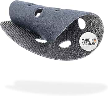 Il disco a strappo protegge i ganci del platorello dall'usura e garantisce una migliore adesione dell'abrasivo. Qualità: Made in Germany - Nessuna merce importata - Gancio e anello (anelli) durevoli e resistenti per una buona adesione. Protezioni Per Platorello Proteggi Platorello DFS 150mm 67-Fori (compatibile Con MIRKA Dischi Per Smerigliatrice Il diametro di 150 mm, in combinazione con un sistema multi foratura a 67 fori, lo rendono compatibile con tutte le levigatrici Mirka della serie Deros - Ceros - Rotorb - Pros - Ros, oltre a levigatrici di altre marche con platorello delle stesse dimensioni Inoltre, i ganci possono allentarsi a causa del calore o intasarsi o incollarsi a causa della polvere di molatura. Il pad di interfaccia viene semplicemente attaccato al platorello e alla carta vetrata o ai bastoncini di spugna per lucidatura sotto. Compatibile con tutti i comuni platorelli e levigatrici di Mirka, 3M, Festool, Makita, Bosch, Hilti, Fein, Dewalt, Sia, Kress e altre levigatrici elettriche o ad aria compressa. Grazie al velluto, il tampone protettivo aderisce al platorello e offre così una nuova superficie adesiva per la carta vetrata. Adesione particolarmente buona per Abranet o altro tessuto a rete e rete abrasiva. I dischi adesivi sono disponibili in tutte le dimensioni comuni (diametri) e con vari modelli di fori per l'aspirazione della polvere e sono adatti per levigatrice a disco, levigatrice orbitale, smerigliatrice angolare o lucidatrice. Durante la levigatura può succedere che i ganci vengano levigati con carta vetrata usurata o con un uso errato. Il tampone protettivo ora provoca l'usura dei ganci del platorello più economico e il platorello può continuare ad essere utilizzato. Che cos'è un rivestimento protettivo? Il rivestimento protettivo è un'interfaccia sottile che consiste di gancio e anello e viene utilizzato come superficie di contatto in velluto sul retro. Di conseguenza, la nuova carta vetrata non aderisce più e l'intero platorello deve essere sostituito.