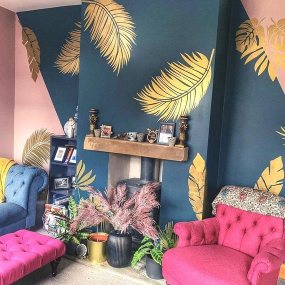 Stencil 30cm - 60cm Per Decorazioni Murali Ptura Modello Di Mobili Porta Vernice Grande Accento Armadio Foglia Giungla Tropicale Estate S254