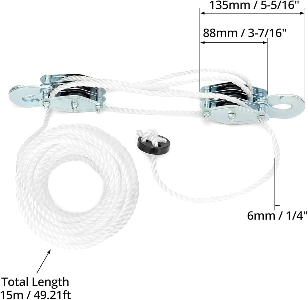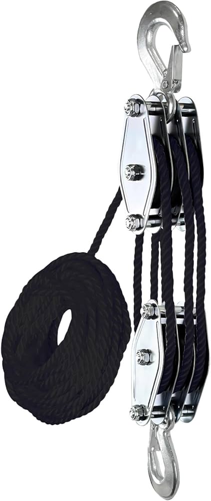 Questo articolo: ECUTEE Puleggia a Corda Resistente, Carrucola da 900 KG con Fermacorda, Blocco di Carico di Lavoro e Sistema di Puleggia per Sollevare Oggetti Pesanti, Altezza di Sollevamento [Prestazioni]: Questo Puleggia offre uneccellente potenza di sollevamento e traino con la sua capacità di traino di 1984 libbre / 900 kg. Forte capacità di carico, elevata resistenza strutturale. Carrucole Per Macchine Di Sollevamento QWORK® Set Di Carrucola Per Sollevamento Con Cavi - 8 Pulegge - Portata Massima 400 Kg - Altezza Massima Di Sollevamento 1,8 M Verricello Manuale [Altissima Qualità]: Realizzato in acciaio A3, antiruggine e resistente allusura con struttura altamente robusta. Specifiche:Materiale: acciaio A3 (blocco puleggia), nylon (corda)Carico massimo: fino a 900 kgLunghezza della fune: circa 20 metriDiametro della corda di nylon: 5 mmDimensioni dell'imballaggio: circa 22 × 16 × 13 cmPeso: circa 2 kgLa confezione include2* blocco carrucola1* corda di nylonSuggerimenti amichevoli: Tutti i prodotti sono misurati manualmente, si prega di consentire 1-3CM errore.