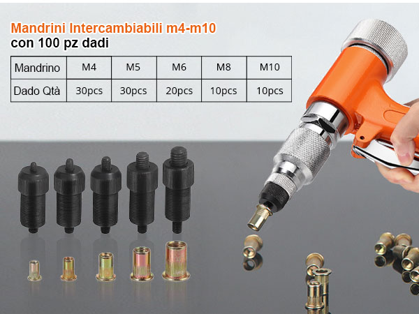 HIFESON Pneumatico Rivetto Dado Pistola Inserto Filettato Pull Setter Rivettatrici Rivettatura Dadi Rivnut Strumento Per M3 M4 M5 M6 M8 M10 M12