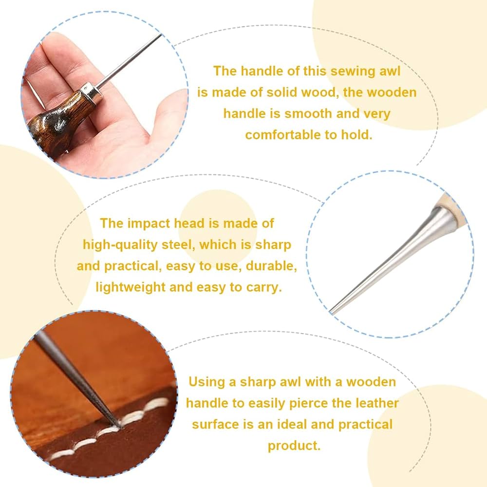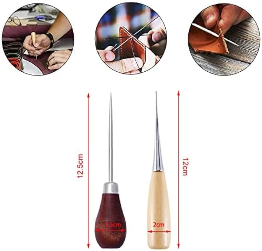 Punteruolo, Punteruolo In Pelle, Punteruolo Da Cucito, Per Cucire In Pelle, Perforatore, Manico In Legno, Nessun Occhio Bianco, Fai Da Te, Utensile Manuale, Lavorazione Della Pelle, 2 Pezzi