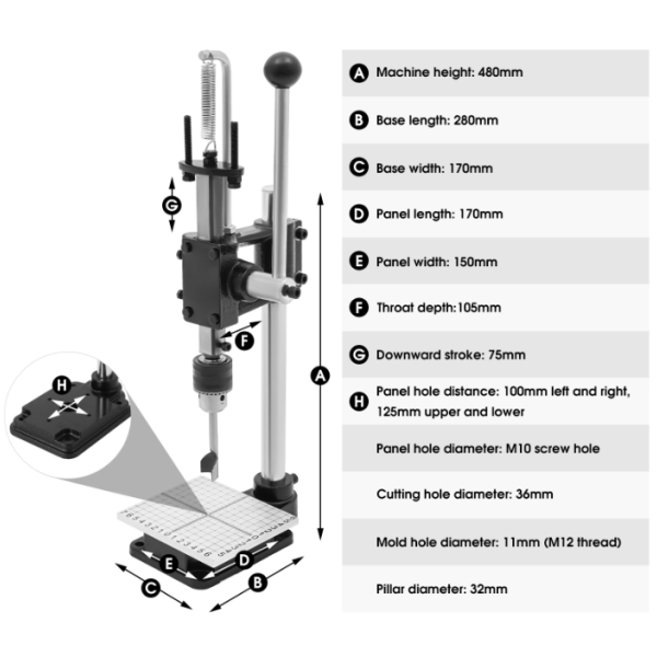 Punzone Per Pelle Con Mandrino Da 1,5-13 Mm E Kit Di Punzonatura A Semicerchio