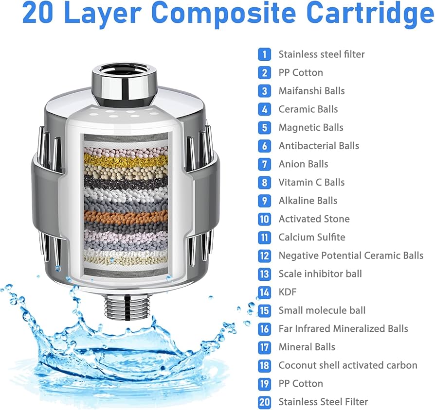 Il nostro filtro anticalcare per soffione doccia presenta 20 livelli di filtrazione massima dell'acqua per una pelle più morbida, unghie più forti e capelli più lucenti. Un efficace filtro per l'acqua della doccia rimuove cloro e fluoro, metalli pesanti e altri sedimenti Servizio clienti: forniamo assistenza clienti professionale. Sicuro ed efficace: applicare su acqua fredda e bagno di acqua calda. Protezione altamente efficiente: il filtro doccia a 20 strati con sistema di filtraggio KDF rimuove efficacemente cloro residuo, metalli pesanti e sedimenti per un'acqua estremamente pulita. FACILE INSTALLAZIONE: il filtro universale è compatibile con tutti i tipi di soffioni doccia, basta filtrare il soffione e godere dei benefici di un'acqua più pulita. Filtro Doccia Coreano Purificatore Acqua Filtro Doccia Universale Con Carbone Attivo Per Purificare L'acqua Nella Doccia Filtro Anticalcare Lavatrice Filtro Anti Calcare Per Doccia Nessuna perdita di pressione dell'acqua: l'innovativa tecnologia garantisce un flusso d'acqua continuo e forte senza influire sulla pressione dell'acqua.