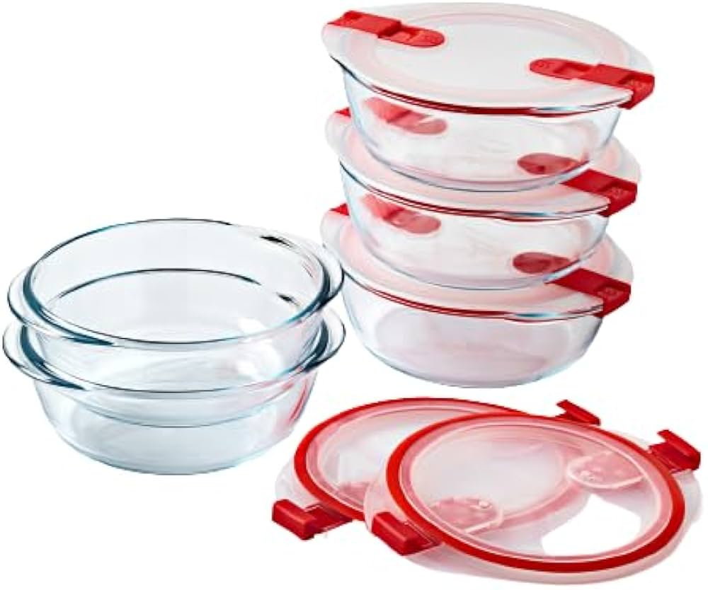 Pyrex® Collezione Cook & Go Speciale Batchcooking|Lunchbox Rotondo In Vetro Borosilicato Con Coperchio Ermetico 15 Cm 0,7 L | Set Di 5 | Compatibile Con Forno, Microonde E Lavastoviglie