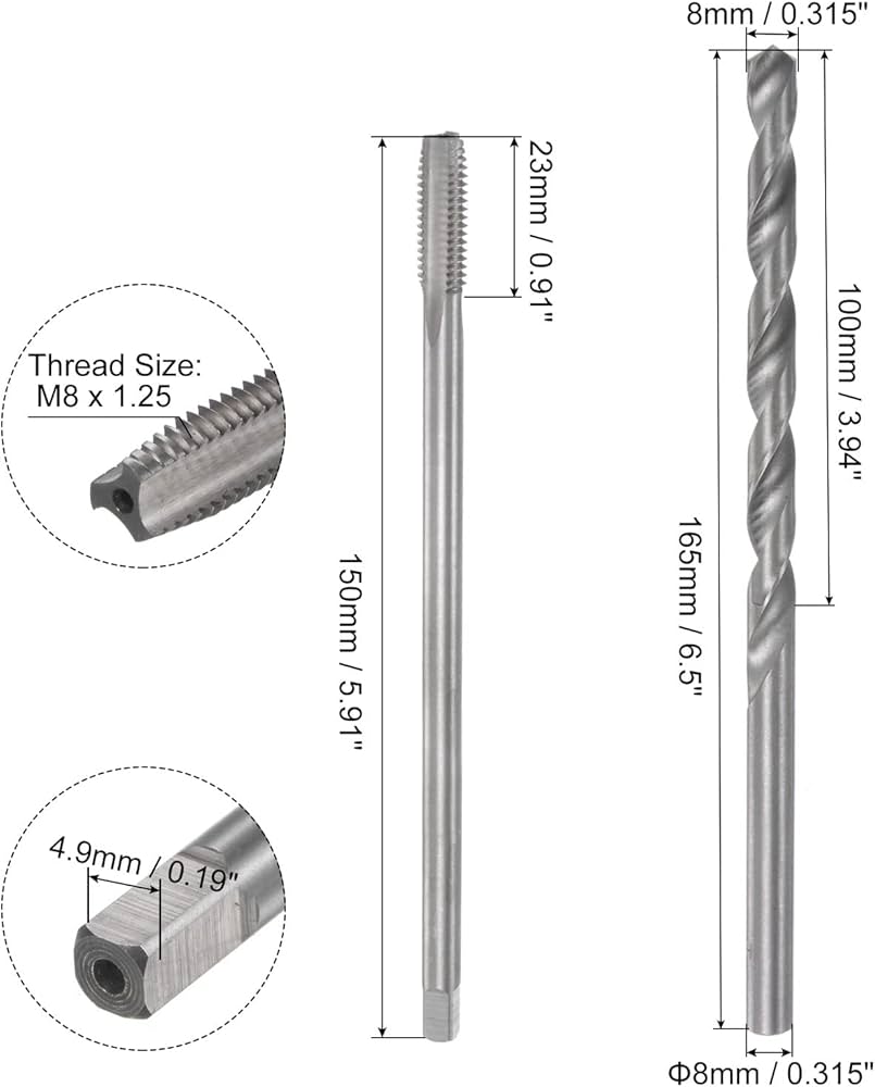 NON consigliato per filettatura manuale ed elettrica. Ampie applicazioni: I maschi per filettatura creano nuovi filetti o ripristinano filetti danneggiati o bloccati. QUARKZMAN Maschio Per Filettatura Metrica M8 X 1.25 H2 200mm Extra Ampiamente utilizzati per la maggior parte dei metalli, lamiera di ferro, rame, zinco, acciaio legato, acciaio abrasivo, acciaio A3, acciaio inossidabile. Prima di filettare, forare i fori con una punta elicoidale, quindi utilizzare il maschio per filettatura. L'angolo di filettatura dovrebbe essere di 90 gradi, verticale e stabile. Il rivestimento in titanio offre un'eccellente resistenza alla corrosione, migliora la resistenza all'usura e la durezza e riduce il coefficiente di attrito per una filettatura più scorrevole e veloce. Aggiungi un olio di filettatura adeguato per ottenere filetti di migliore qualità e maschi più duraturi.