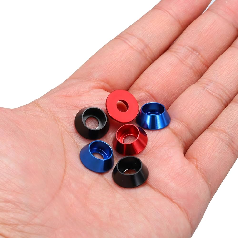 Cosa devo notare?Note: Il prodotto è una misurazione manuale, potrebbe esserci un piccolo errore, fare riferimento al prodotto effettivo. Cosa riceverò?Guarnizione per vite, dimensioni: dimensioni rondella, diametro esterno: 8,5 mm; diametro foro: 7,4 mm; spessore: 4,5 mm; colore: rosso scuro; materiale: lega di alluminio; confezione da: 60 pezzi rondella conica M4;Ci sono vantaggi del prodotto?La rondella è realizzata in lega di alluminio, leggera, resistente all'usura e dura. QUARKZMAN Rondelle Tazza Conica M4, Guarnizioni Alluminio Anodizzato Guarnizione Rondella Testa Tazza Vite Rc/Fpv/Pc/Drone/Accessori Meccanici Parti Modello, Pz60 (Rosso Scuro Rondelle M4 QUARKZMAN Rondelle Tazza Conica M5, Guarnizioni Alluminio Anodizzato Guarnizione Rondella Testa Tazza Vite Rc/Fpv/Pc/Drone/Accessori Meccanici Parti Modello, Pz60 (Rosso Scuro Rondelle Coniche In Alluminio Le guarnizioni in alluminio sono decorazioni per viti RC/FPV/PC/Drone/Accessori per modelli meccanici, ecc. La rondella è realizzata in lega di alluminio, leggera, resistente all'usura e dura. La rondella per vite è anodizzata per prevenire la ruggine. Guarnizione per vite, dimensioni: dimensioni rondella, diametro esterno: 8,5 mm; diametro foro: 7,4 mm; spessore: 4,5 mm; colore: rosso scuro; materiale: lega di alluminio; confezione da: 60 pezzi rondella conica M4; Cosa è questo?Le guarnizioni in alluminio sono decorazioni per viti RC/FPV/PC/Drone/Accessori per modelli meccanici, ecc.