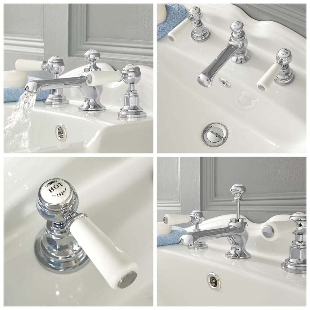 Senlesen Rubinetti Per Lavabo Dorati Lucidi Rubinetti Per Lavabo Da Bagno Quadrati Montati Su Piano In Ottone Doppia Maniglia Rubinetto Per Acqua Calda Fredda A 3 Fori