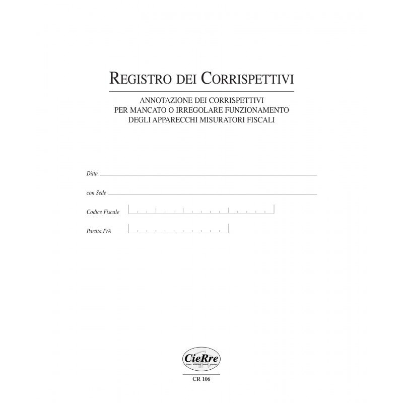 Registro dei corrispettivi per mancato o irregolare funzionamento degli apparecchi misuratori fiscali (registratore di cassa). Composto da 46 pagine Registro Dei Corrispettivi MULTIART REGISTRO DI CORRISPETTIVI PER MANCATO FUNZIONAMENTO DI CASSA Agenzia Delle Entrate Errore Registratore REGISTRO OPERAZIONE PER MANCATO FUNZIONAMENTO REGISTRATORI DI CASSA Formato cm. 22x30