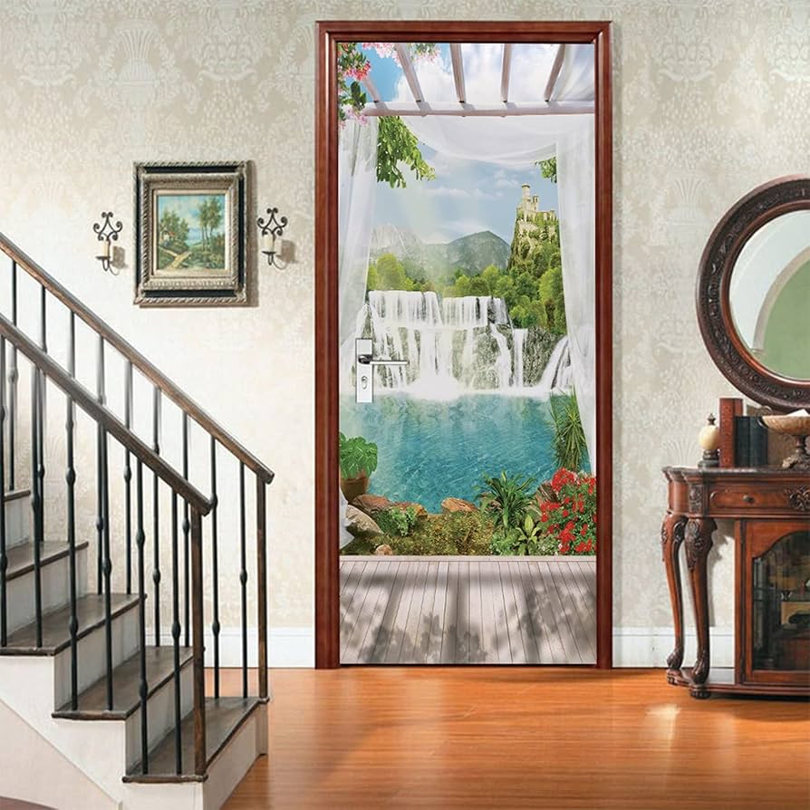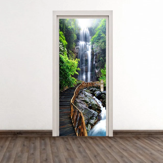 ADESIVO PORTA RIMOVIBILE Decalcomania Arredamento Casa Cascata Foresta Naturale Campagna EUR 17