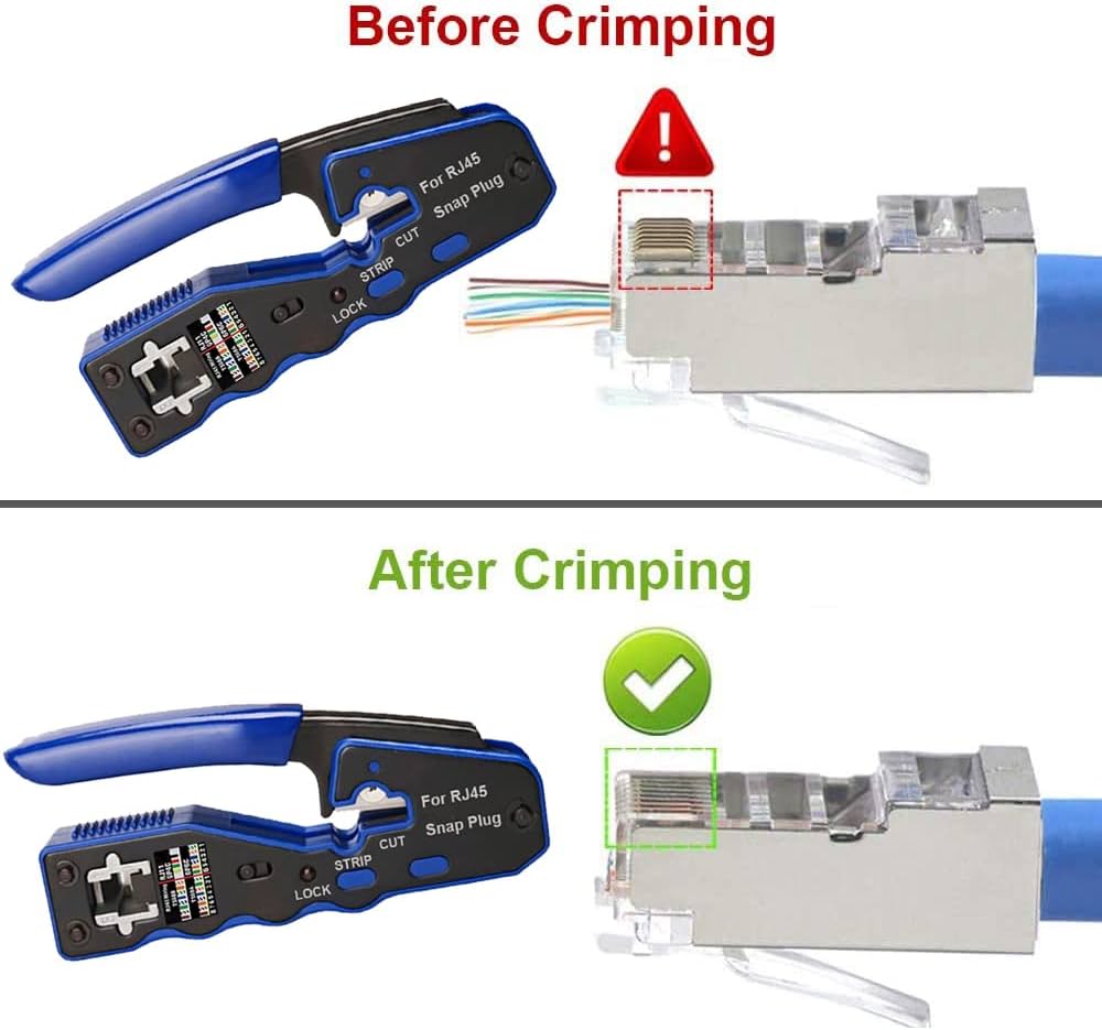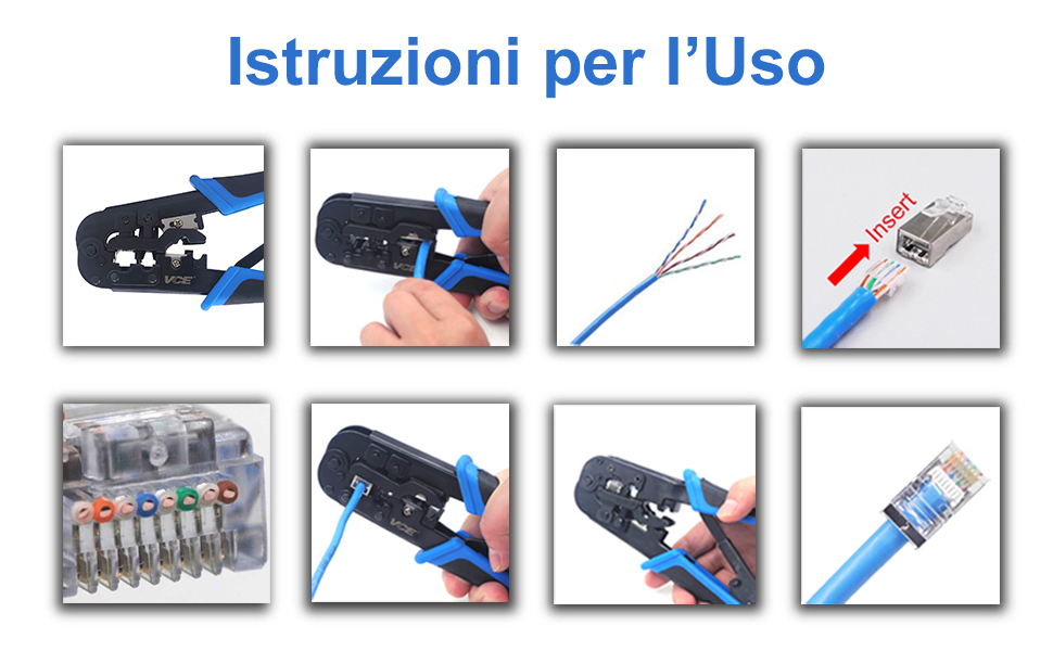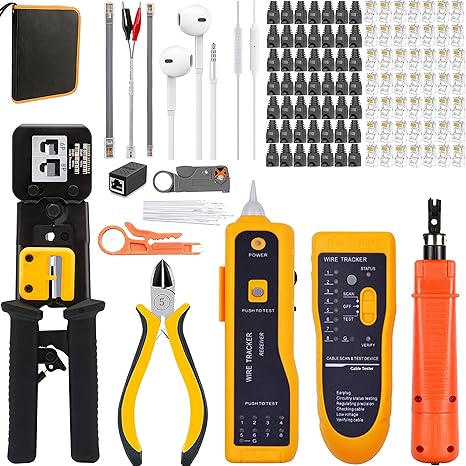 ✔ Adattamenti multipli: compatibile con tutti i Cat 5, Cat 5e, Cat 6, Cat 7, RJ11 6P e RJ45 8P e RJ12 4P. PINZA DI RETE PROFESSIONALE: Il set di strumenti contiene: 1 Pinza crimpatrice RJ45, 20 Connettori RJ45 Passanti Cat7 Cat6A con guida di inserimento e guaina in gomma, 1 Spelafili, 1 Tagliafili, 1 Tester LAN, 1 Punzonatura LSA, 1 Borsa per attrezzi con ch Spiegazione della funzione Il kit di strumenti MAYLINEE-TECH consente agli utenti di installare rapidamente e facilmente computer e adattatori di rete, riparare i cavi di rete e testare la rete. Marchio Il marchio MAYLINEE-TECH è un produttore professionale di strumenti commerciali e fai-da-te. Insistiamo nell'utilizzare i migliori materiali, la migliore qualità e il miglior prezzo per servire i nostri clienti. ✔ Ampiamente usato: progettato per l'uso con linee telefoniche, cavi di allarme, cavi per computer, linee interfono, cavi per altoparlanti e cablaggio del termostato Funzione di scansione - Scopri il cavo funzionante (cavi di rete, linee telefoniche, cavo coassiale, cavo interrato) ✔Portatile da trasportare: una comoda borsa degli attrezzi per riporre e organizzare tutti gli strumenti di manutenzione della rete. *Tagliafili e spelafili multifunzione neri - Spelafili bulit in tre lame, spela rapidamente i cavi coassiali RG59/58/56/62/63/3V2V/4C/5C; La rete UTP/STP delle strisce falcianti Il pacchetto include: ✔1 x pinza per cavi ✔1x tester di rete di fascia alta ✔1 taglierino spelafili ✔1 x strumento di impatto per perforare il filo ✔1 x spelafili e taglierina multifunzione ✔1x Cavo diretto ✔50 testine di cristallo ✔ Set completo professionale: 1 tester per cavi di fascia alta, 1 strumento di crimpatura, 1 forchetta spelafili, 1 coltello spellafili, 1 set di linee fisse, 1 cavo diretto, 50 testine di cristallo di rete, 50 coperture protettive, 100 fascette per cavi, 1 sacchetto di imballaggio. --La pinza per cavi ha tre fori per il taglio, 8P, 6P. Saldatore A Stagno Professionale MAYLINE Cirmpatura Strumenti Kit Di Rete Professionali, RJ45/RJ11/RJ12 Crimping Toolper Cavi Di Rete A Crimpare Manutenzione Del Kit LAN Tester, CAT5 Sonda Passacavi e facile da spellare la pelle esterna del cavo. *Pinzacavi --Adatto per cavo Cat5, Cat5e e Cat 6 con spine 8P8C; Ottimo per l'installazione di cavi e telefoni RJ45, RJ11, RJ12 e qualsiasi altro lavoro di cablaggio elettrico.