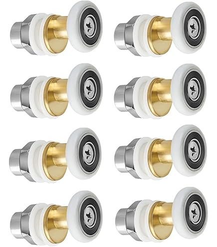 Il fissaggio della porta e della parete doccia avviene tramite cromatura parti in alluminio placcato o plastica PVC. In generale, questa attrezzatura si presenta sotto forma di kit di montaggio. Tuttavia, l'aggiunta di ulteriori pezzi può essere utile per Adatto per vetro di 4-6 mm. Lunghezza totale: 33 mm. [Impermeabile] Cuscinetto completamente chiuso, impermeabile e antipolvere, non facile da arrugginire. Durata prolungata. Installare le ruote sulla parte superiore e inferiore delle porte in vetro curve o diritte. Diametro del foro della porta in vetro: 10 ~ 12 mm. Vetro Doccia Scorrevole Rotelle Box Doccia Universali SET 8 RULLI ROTELLE RUOTE DI RICAMBIO PER BOX DOCCIA PORTA SCORREVOLE CUSCINETTI Rollero Per Box Doccia Porta Doccia [Liscio] Il cuscinetto della ruota è realizzato in rame solido, che ha una struttura solida e una forte capacità portante, in modo che la ruota possa scivolare uniformemente sulla pista, il che è molto risparmio di lavoro.