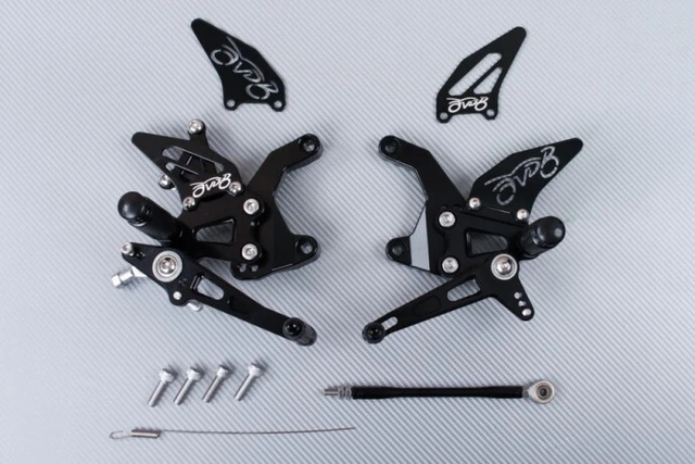 Nota: per facilitare il montaggio, alcune parti del kit vengono consegnate già montate. Si prega di fare riferimento alla seconda e alle successive foto per vedere esattamente cosa riceverete nel kit! Protection Package RSET39BK PEDANE ARRETRATE REGOLABILI R&G KAWASAKI NINJA 250 / 450 2018-2022 Tail Tidy PEDANE REGOLABILI BONAMICI RACING. 100% Made in Italy. Applicazione: KAWASAKI ZX-10R 2021-2024 Codice: K021 Materiale: Alluminio CAMBIO STANDARD E ROVESCIATO. I particolari Bonamici Racing sono realizzati in alluminio aeronautico e rifiniti con un trattam AVDB Moto ti propone tutti questi elementi e altro ancora, anche permettendoti di scegliere il colore di alcune parti per un'ulteriore personalizzazione. QUALITÀ AVDB : Un insieme di pezzi completi (poggiapiedi, asta rinvio al comando, pedale del freno, paratacchi, pedane, viteria inclusa), in alluminio CNC 6061 intagliata nella massa. la prima foto è solo un esempio delle piastre assemblate per darvi un'idea di come appariranno con il colore. Una libertà di scelta nella personalizzazione colori di queste pedane arretrate : la base sarà nera ma hai la scelta tra 7 colori per personalizzare le alette laterali, i poggiapiedi, le estremità dei pedali del freno e cambio, e qualche rondella e vite varia nelle colorazioni Alluminio, rosso, blu, oro, arancio, verde o nero EFFICIENZA E PRATICITÀ: poggiapiedi con estremità in teflon e dentellati per fornire la presa necessaria per una buona tenuta. Le pedane arretrate offrono anche la possibilità di numerose regolazioni della posizione. Vuoi offrire alla tua moto delle pedane multiposizione, con varie possibilità di regolazione al livello dei poggiapiedi, loro supporti, pedalini, paratacchi, estremità ... Ma questa coppia di pedane arretrate deve piacere anche a te, con uno stile che non passa inosservato ! Un insieme di pezzi in alluminio CNC 6061 intagliati nella massa e anodizzati, con una garanzia di 6 mesi sull’anodizzazione Poggiapiedi con punta dentellata, per fornire la presa necessaria per una buona tenuta e chiuso con una punta in teflon all'estremità. Libertà di regolazione grazie alle nostre pedane arretrate multiposizione.