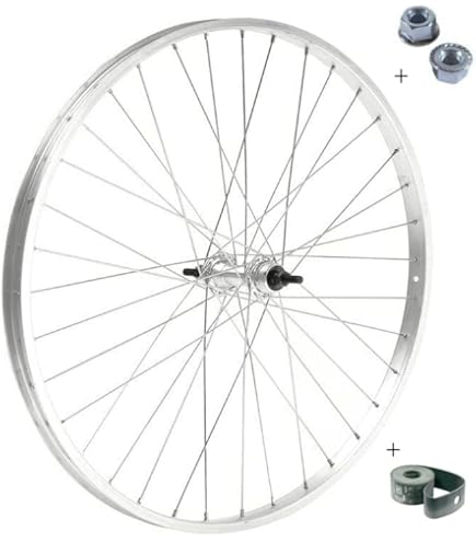 La ruota è completa e assemblata di cerchio, raggi, mozzo e dadi di fissaggio. Come da foto la ruota è completa, ossia vi arriva assemblata di cerchio, raggi e mozzo, e in omaggio forniamo flap (copriraggi) e dadi di fissaggio. Ruota posteriore 26 per city bike, in alluminio, con dadi e flap inclusi. Resistente e leggera Pollici RUOTA/CERCHIO POSTERIORE 26" X 1.75 + RUOTA LIBERA 6 VELOCITÀ BICI Bicicletta 26 Resistenza alla corrosione atmosferica in quanto resiste all’ossidazione e non arrugginisce: i cerchi lavorano in condizioni gravose, spesso nel fango, nell’acqua o su strade poco pulite Resistente agli urti: dopo lo pneumatico, il cerchio è il primo componente che subisce le vibrazioni e gli urti del terreno; questi scontri possono a volte essere violenti, per cui ai cerchi è richiesta una notevole resistenza affinché non si pieghi o spezzi durante l’uso Inoltre prima di procedere alla spedizione le ruote vengono controllate presso la nostra officina per poter eseguire eventuale centratura della ruota qualora ne fosse necessario. Resistente alle tensioni interne (momenti torcenti scaricati dai raggi, senza ovalizzarsi) | Materiale: ruota in alluminio, mozzo e raggi in acciaio Ruota posteriore per bici 26 x 1.3/8 con cambio.