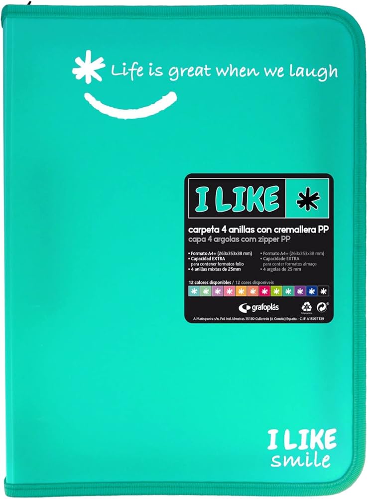 Raccoglitore con 4 anelli da 25 mm e chiusura a zip. Raccoglitore realizzato in polipropilene semi-rigido di colore turchese. Grafoplas - Raccoglitore A 4 Anelli, Formato A4, Carpebook Polyfoam, Resistente E Ultra Leggero, Con Rilegatura A Sfera, Colore: Giallo, Con Ricambio, Separatori E Busta, Perfetto Per Organizzare Chiusura sicura Chiudi la tua cartella con la pratica chiusura a cerniera, i tuoi documenti saranno al sicuro. Cosa troverai nel raccoglitore ad anelli con cerniera Like? Raccoglitore ad anelli con cerniera Mantenete i vostri documenti protetti dall'acqua e da pieghe grazie alla copertura in polipropilene. Raccoglitore perfetto per contenere e trasportare documenti scolastici. Formato A4+, capacità extra per contenere documenti formato foglio. Tutto ciò di cui hai bisogno Contiene una cerniera per proteggere meglio i documenti e 4 anelli per archiviarli. Capacità extra per contenere formati folio Chiusura con cerniera Copertura in polipropilene semirigido opaco Raccoglitori Ad Anelli A4 Raccoglitore Ad Anelli Marbig Clearview A4 4D In Polipropilene Raccogliere Ad Anelli A4