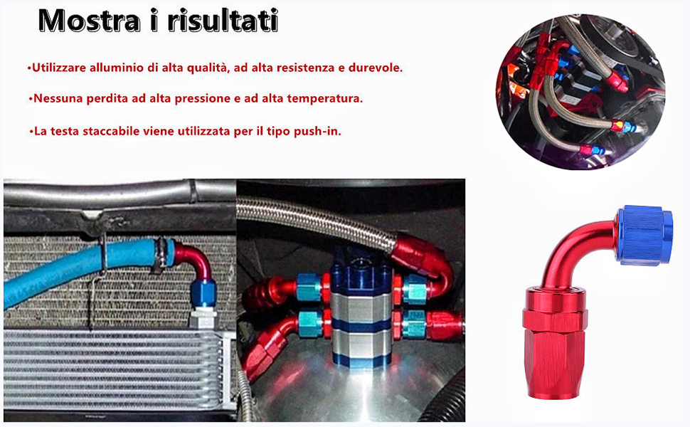 Raccordo Girevole Per Estremità Tubo Flessibile Carburante AN10, Adattatore Radiatore Olio, Anodizzato Di Colore Blu E Rosso, Adatto Per Tubo Carburante E Radiatore Olio Con (0°) : Amazon.it: Auto E Moto