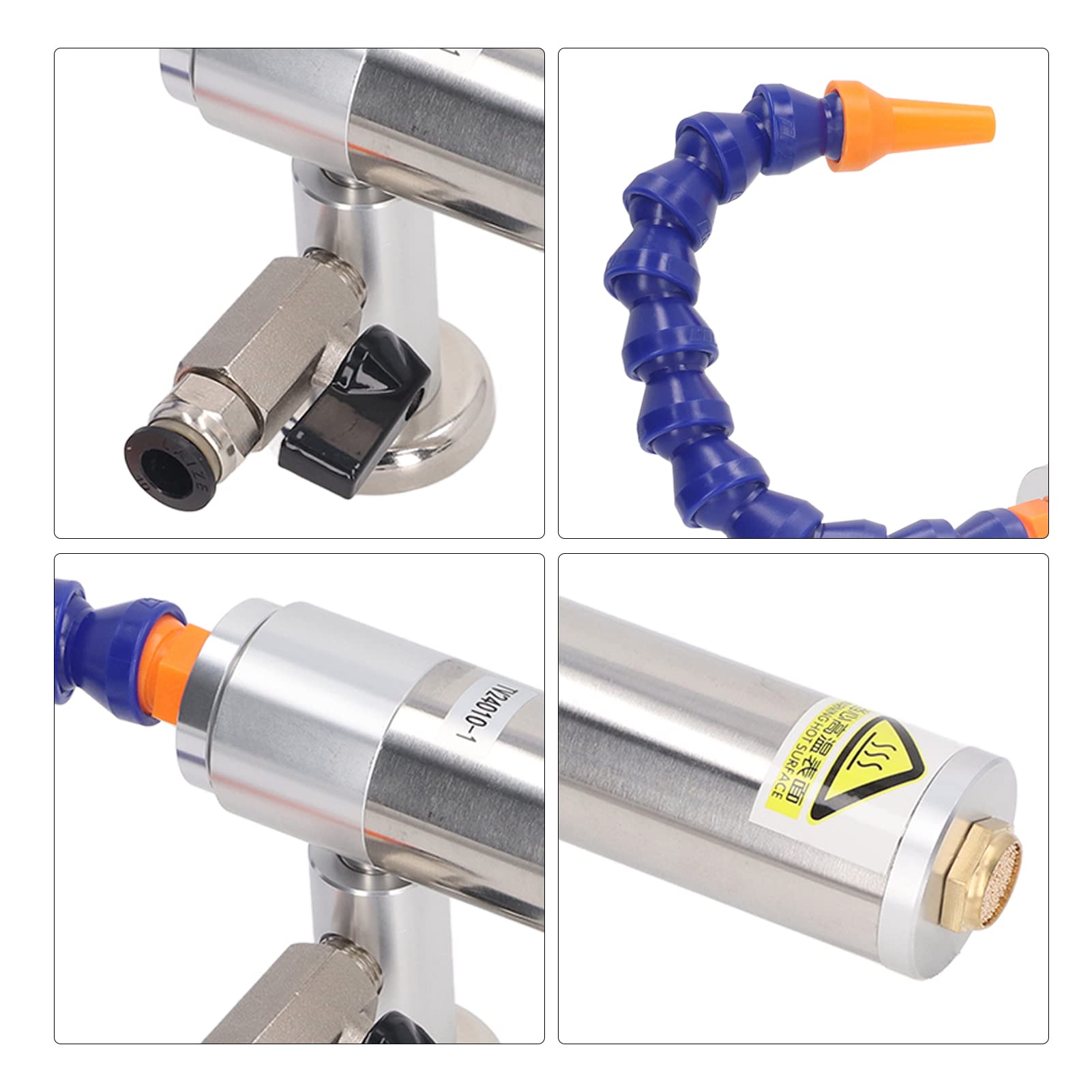 Pistola Vortice Compressore Mumusuki Pistola Di Raffreddamento A Secco Vortex Per Processo Meccanico In Lega Di Alluminio Da 130 Mm + Tubo Flessibile Aria Fredda 【Fonte di aria fredda portatile】 La pistola ad aria fredda è un metodo conveniente per ottenere un flusso di aria fredda dove ne hai bisogno. Può utilizzare aria compressa per ridurre la temperatura dell'aria e produrre flusso d'aria criogenico. La pistola ad aria fredda supporta il raffreddamento istantaneo, 520 BTU/h, 131 Kcal/H, può regolare rapidamente la temperatura attraverso la valvola 【Utilizzo di aria compressa】 Questo dispositivo richiede solo aria compressa per abbassare la temperatura dell'aria, producendo un flusso d'aria a bassa temperatura. 【Affidabilità industriale】 Questo dispositivo è essenziale in ambienti industriali difficili, dove fornisce applicazioni di raffreddamento in modo continuo e stabile. 【Controllo preciso】Dotata di una valvola di controllo integrata, questa pistola offre la possibilità di regolare con precisione il volume e la temperatura dell'aria in uscita, consentendo un facile adattamento a specifiche esigenze di raffreddamento. Il suo funzionamento pulito garantisce che possa essere utilizzato in vari ambienti senza problemi. 【Installazione semplice e pulita】 Grazie al suo tubo universale flessibile, la pistola ad aria fredda può essere facilmente installata dove è necessario il raffreddamento.