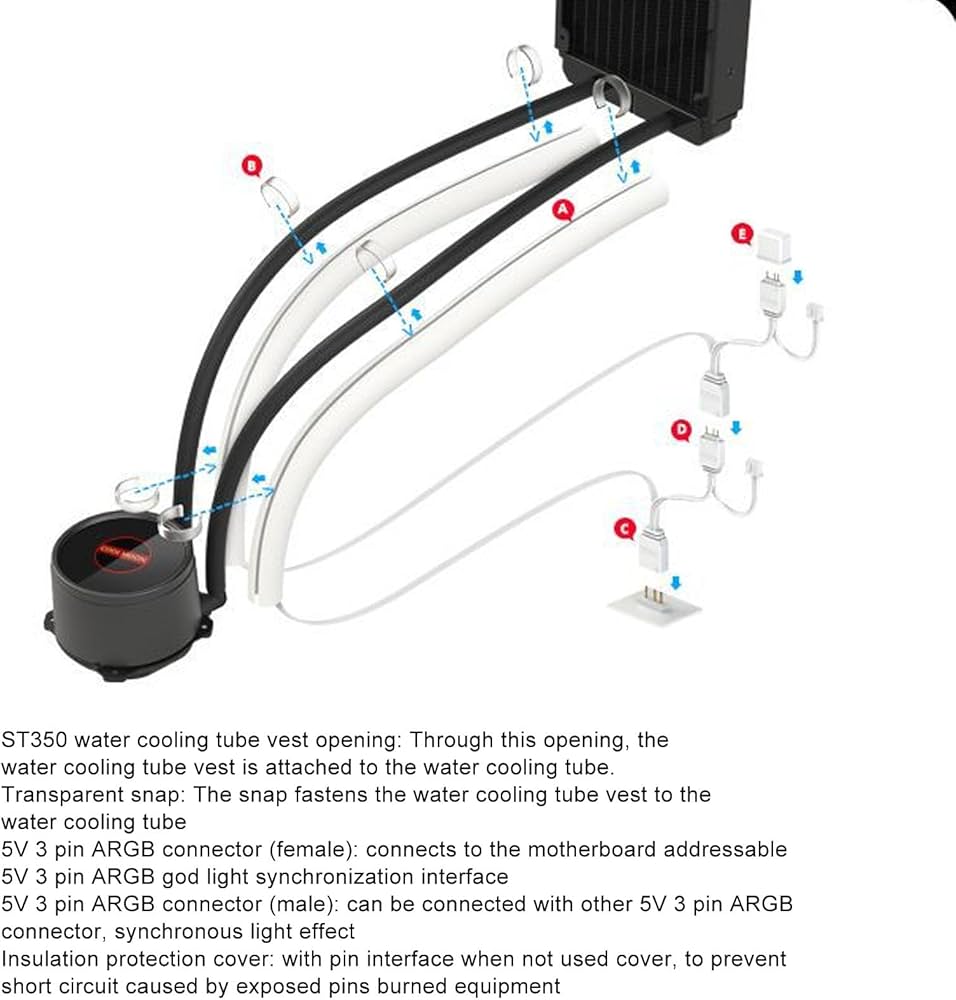 Lista Imballaggio:2 tubi di raffreddamento ad acqua ARGB1 confezione di fibbie di installazione (8 pezzi)Nota:Misurazione manuale si prega di consentire qualche Specifiche tecnicheifiche tecniche:Tipo di elemento: tubo di raffreddamento ad acqua ARGBMateriale: siliconeDimensione del tubo: ca. Acquistare online dal vincitore di diverse prove: distributore hardware dell'anno nel 2010, 1 posto nel test dei portali di acquisti online! Fantastiche novità & articoli più venduti, servizio eccellente Alimentatore Raffreddamento Ad Acqua FROZEN NOTTE 240 WHITE ARGB Raffreddamento Ad Acqua Radiatore CPU, 240 Tubi Raffreddamento 35 PERLINE DELLA LAMPADA ARGB: manicotto del tubo sincronizzato integrato fino a 35 perline della lampada ARGB, colori pieni, perline della lampada ad alta densità, rendono la luce molto luminosa e piena, perdita di perline della lampada, ombra evidente sulla superficie. SILICONE MORBIDO: conduttività della luce in silicone, luce morbida e traslucida, quando la luce passa attraverso il silicone, ha una calda consistenza traslucida simile alla giada, morbida e resistente. 345 x 19 mm/13,58 x 0,75 polliciInterfaccia: 5 V 3PINNumero di tubi: 2Numero di sfere per tubo: 35Luce: ARGBCorrente: 0,5 A±10%Potenza: 2,5 W ± 10%Lunghezza del cavo: ca. 16,8 MILIONI DI COLORI PROGRAMMABILI: sincronizzazione della luce ARGB da 5 V, 16,8 milioni di colori programmabili, supporto per , per MSI, per e altre schede madri con porte ARGB, controllo della luce tramite software. 1. LUCE MORBIDA PANORAMICA A 360 GRADI: custodia leggera ARGB, luce morbida panoramica a 360 gradi, luce morbida ad alta luminosità, effetti di luce più freddi, più traslucidi e luminosi, ombra sul retro, bella ad ogni angolazione.2. 35 PERLINE DELLA LAMPADA ARGB: manicotto del tubo sincronizzato integrato fino a 35 perline della lampada ARGB, colori pieni, perline della lampada ad alta densità, rendono la luce molto luminosa e piena, perdita di perline della lampada, ombra evidente sulla superficie.3. 16,8 MILIONI DI COLORI PROGRAMMABILI: sincronizzazione della luce ARGB da 5 V, 16,8 milioni di colori programmabili, supporto per , per MSI, per e altre schede madri con porte ARGB, controllo della luce tramite software.4. INSTALLAZIONE FAI DA TE: tubo ARGB raffreddato ad acqua per installazione fai da te, connettori 3PINx2 e 4PIN, tensione 5 V CC; Dì addio a passaggi ingombranti, prese ad apertura laterale, fissaggio a scatto, rendi l'installazione facile e semplice.5. SILICONE MORBIDO: conduttività della luce in silicone, luce morbida e traslucida, quando la luce passa attraverso il silicone, ha una calda consistenza traslucida simile alla giada, morbida e resistente.