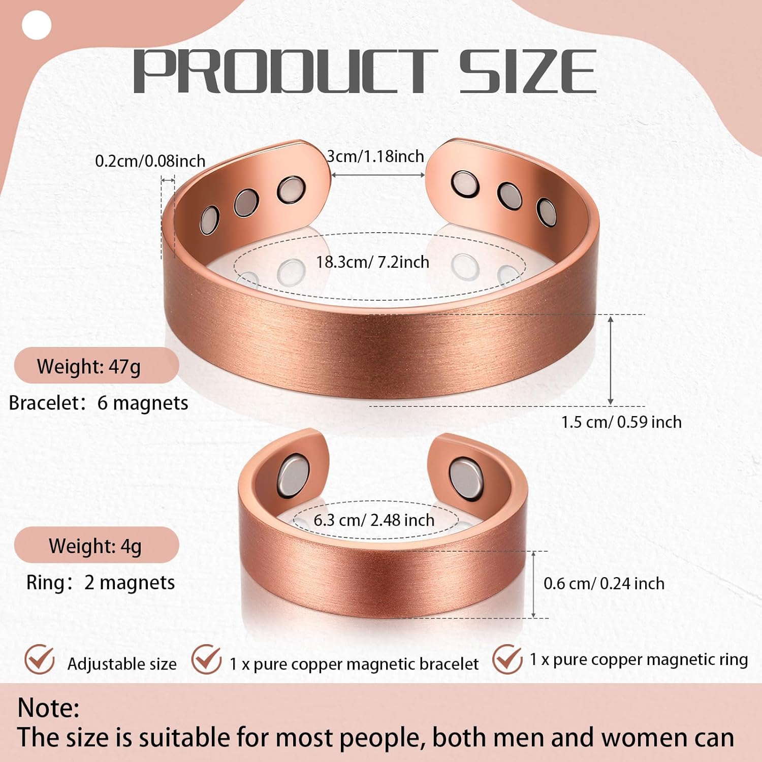 Il tuo marchio affidabile: fondato nel 2014, come marchio noto in questo campo di braccialetti magnetici. Tutte le tendenze e le nuove collezioni di 99,99% braccialetti magnetici in rame puro per uomini donne banghi magnetici ultra resistenza 3500 gauss neodimio magneti all'ingrosso241224ww in un unico posto: scopri quelli più economici su DHgate Il miglior m Migliora il tuo ensemble con un tocco di fascino magnetico: il braccialetto magnetico Jeracol in cui lo stile incontra la sostanza in una miscela perfetta di moda e funzionalità Scopri il fascino del nostro braccialetto magnetico, un'epitome di stile e raffinatezza. Il suo design raffinato passa senza sforzo da casual a formale, rendendolo un'aggiunta versatile al tuo guardaroba. Regalo classico e unico: braccialetto magnetico bello e funzionale, generoso e attraente, adatto per ogni occasione e può completare il tuo stile personale. Se avete domande, non esitate a contattarci, saremo sempre qui per servirvi e rispondere al vostro messaggio Whthin 24 ore. Ordiniamolo ora! Lunghezza: 17 cm; larghezza: 1 cm; peso: 25 g. Le sue dimensioni possono essere regolate per adattarsi alla maggior parte dei polsi con una leggera pressione che consente di regolare facilmente le dimensioni del braccialetto di rame a casa. Le linee lisce hanno un'estetica unica, il design di apertura è più facile da regolare, con 8 magneti di forza. 1pc Braccialetti In Rame Per Uomini E Donne, Braccialetti In Rame Puro Dimensioni regolabili: questo braccialetto magnetico per donne e uomini. Offri una migliore esperienza con la migliore qualità!