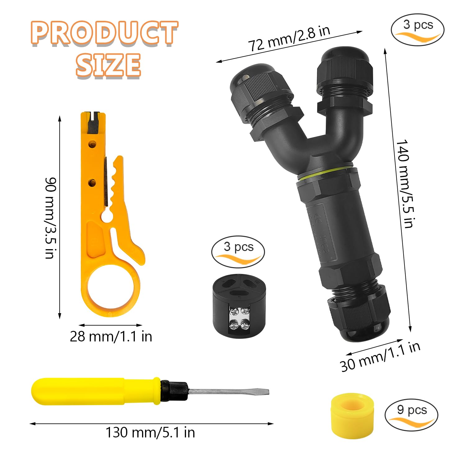 3 Pezzi Connettori Elettrici Impermeabili, 3 Vie E 3 Pin Connettori Elettrici Rapidi Con Cuscinetti In Silicone E Spelafili, Connettori Per Cavi A Y IP68, Per Diametro Cavo 4-14 Mm (1) : Amazon.it: Fai Da Te