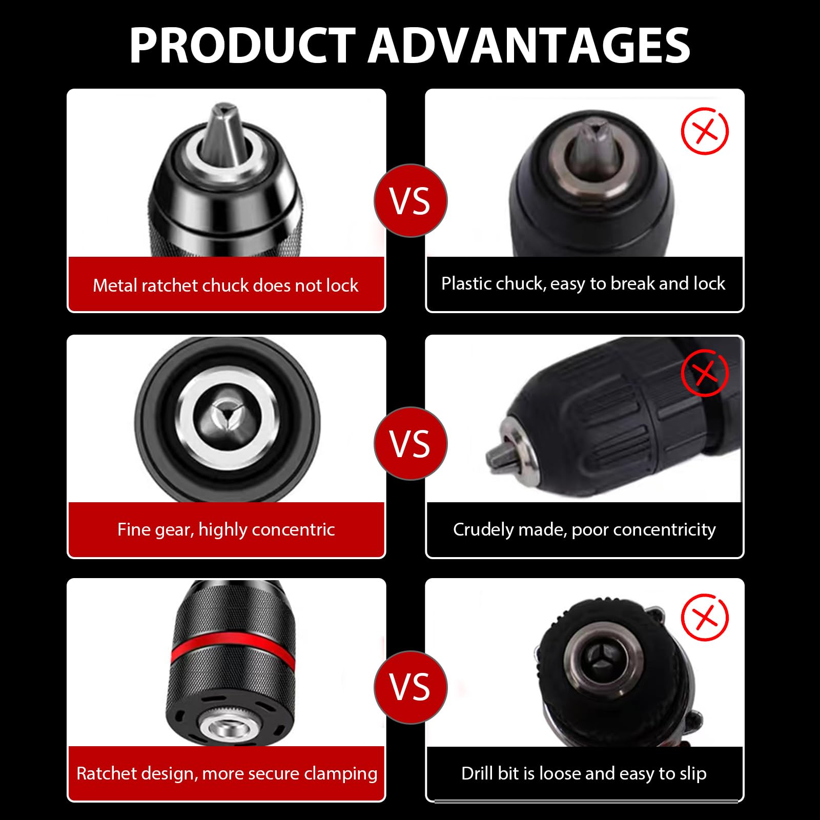 Mandrino Per Trapano, Mandrino Per Avvitatore A Percussione Gambo A Rapido 1/2 Pollice Mandrino Autoserrante Senza Chiave Per Trapano Elettrico, Martello, Mandrini Per