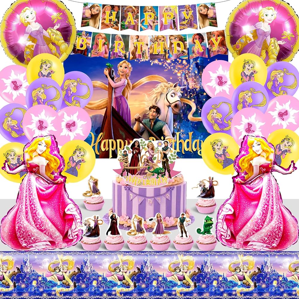 80 Pcs Rapunze Compleanno Bambina, Decorazioni Tema Rapunze Rapunze Compleanno Kit Festa Addobbi 100485