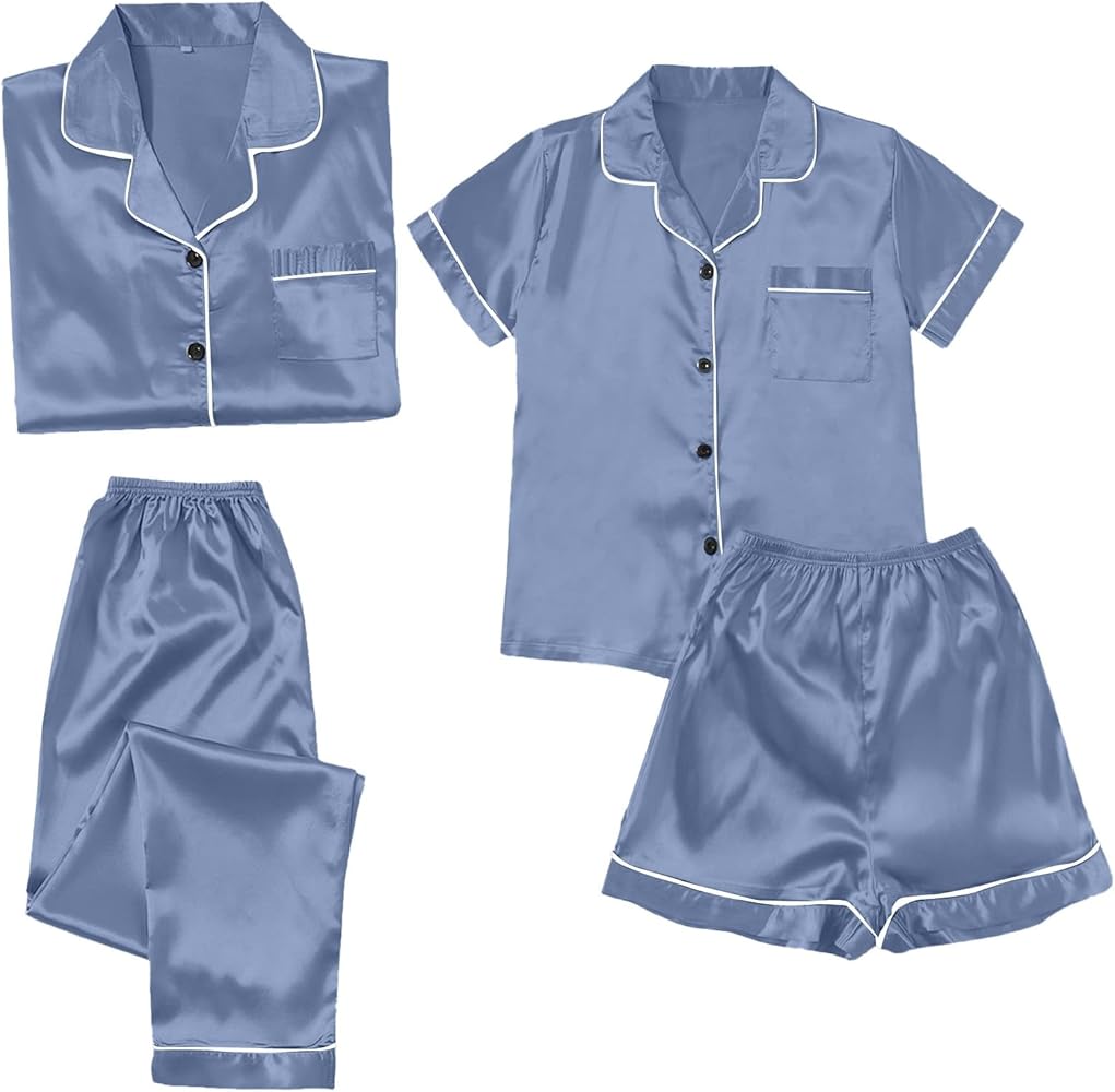 Pigiama Da Donna In Raso, 4 Pezzi, Biancheria Da Notte In Seta, Con Bottone, Per La Casa, Sexy, Cami Top E Pantaloncini, Set Da Donna, Pigiama Corto, Camicia Da Notte, Bianco, 3XL