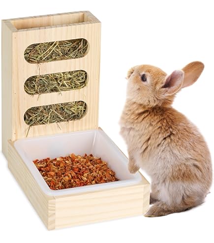 MANGIATOIA PER CONIGLI CON PORTA FIENO E MANGIME - Mangiatoie - CUNICOLI 【Riduci il disordine e minimizza gli sprechi】: puoi aggiungere fieno dall'alto, mantenendo una grande scorta di fieno in una mangiatoia pulita e organizzata aiuta a ridurre gli sprechi di fieno . 【Premium e affidabile】: la mangiatoia per conigli è realizzata in materiale in legno, ecologico, robusto e durevole. Mangiatoia Per Conigli Rastrelliera Per Fieno Per Conigli - Italia Mangiatoie Per Conigli Online 【Pratico】: il distributore di fieno con lettiera può aiutarti ad allenarti a raccogliere un po' di cacca in un luogo fisso, per mantenere l'habitat in ordine. Applicazione: la mangiatoia per fieno in legno per conigli è ottima per porcellini d'India, cincillà, coniglietti, criceti o altri piccoli animali rettali.