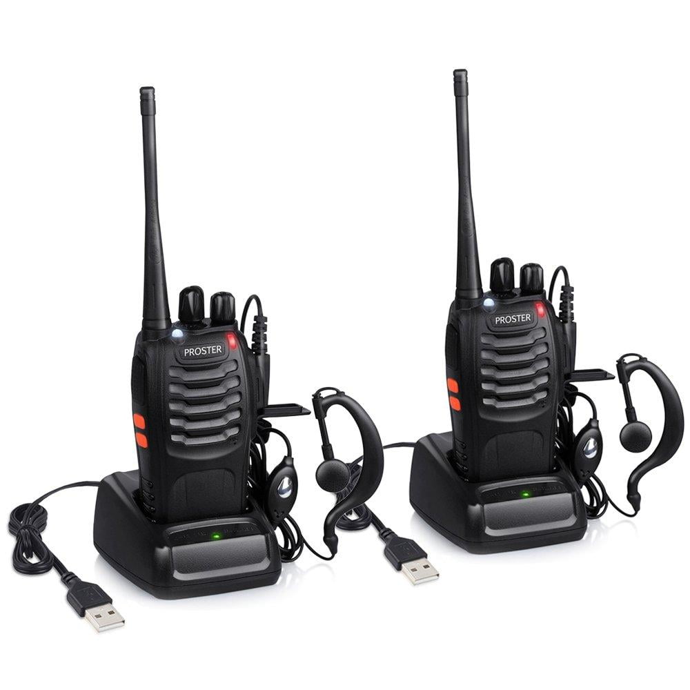 Proster Walkie Talkie Recargabl, Walky Talky Profional 16 Canal Ctcss Dcs Con Auricular Incorporado Antorcha De Led Y Cargador Usb 2 Pares