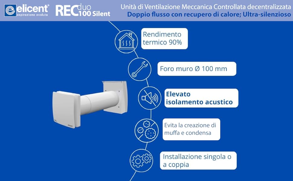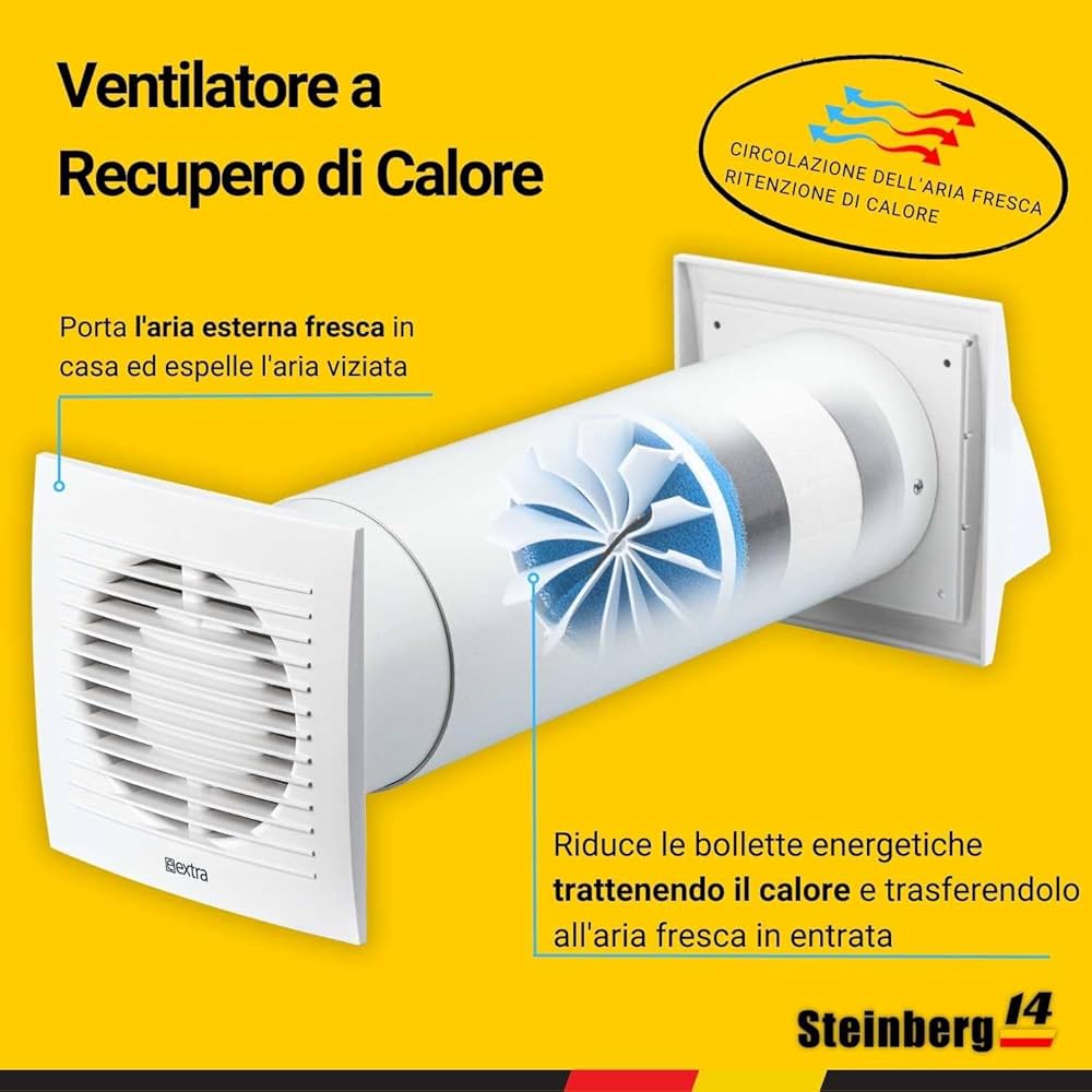 Il vmc recuperatore di calore estrae l'aria viziata dall'ambiente e immette aria fresca dall'esterno, assicurando un comfort termico costante per tutto l'anno e rendendola ideale per applicazioni residenziali come bagni, cucine, garage, uffici, ecc. Il vmc a doppio flusso è dotato di un innovativo scambiatore di calore in ceramica che cattura il calore dall'aria in uscita e lo utilizza per riscaldare l'aria fresca in entrata, migliorando così l'efficienza energetica. vmc quantum recuperatore puntuale calore Per una corretta installazione, il foro nella parete deve avere una dimensione di 105-106 mm. Ventilatore Ventilatore a bassa rumorosità e di lunga durata, adatto al funzionamento continuo. Questo comodo controllo garantisce prestazioni di ventilazione ottimali, adatte alle vostre esigenze. L'unità è inoltre dotata di due filtri sostituibili e lavabili che catturano polvere e particelle dall'aria in entrata e in uscita. Descrizione prodotto Il sistema consente una ventilazione ottimale ed efficiente di una singola stanza Come funziona? Fino all'90% del calore dell'ambiente viene recuperato grazie al cambio di direzione del flusso d'aria. Griglia di protezione dalle intemperie Cofano di protezione dalle intemperie - Protezione del sistema dalle intemperie. Due filtri L'unità è dotata di due filtri che proteggono dalla polvere e dagli insetti. Unità Di Recupero Calore Vortice LIRAST 100mm Ventilazione Meccanica Controllata VMC Doppio Flusso Recupero Calore Con Interruttore - Antracite VMC Recuperatore Di Calore Doppio Flusso : Amazon.it: Fai Da Te Vmc Decentralizzata Prezzi