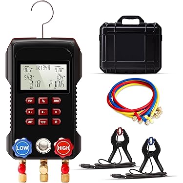 MOTOCOCHE R410a Manometro Digitale Gas Refrigerante Con 90 Refrigeranti, Incorporati Manometri