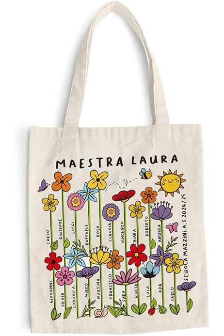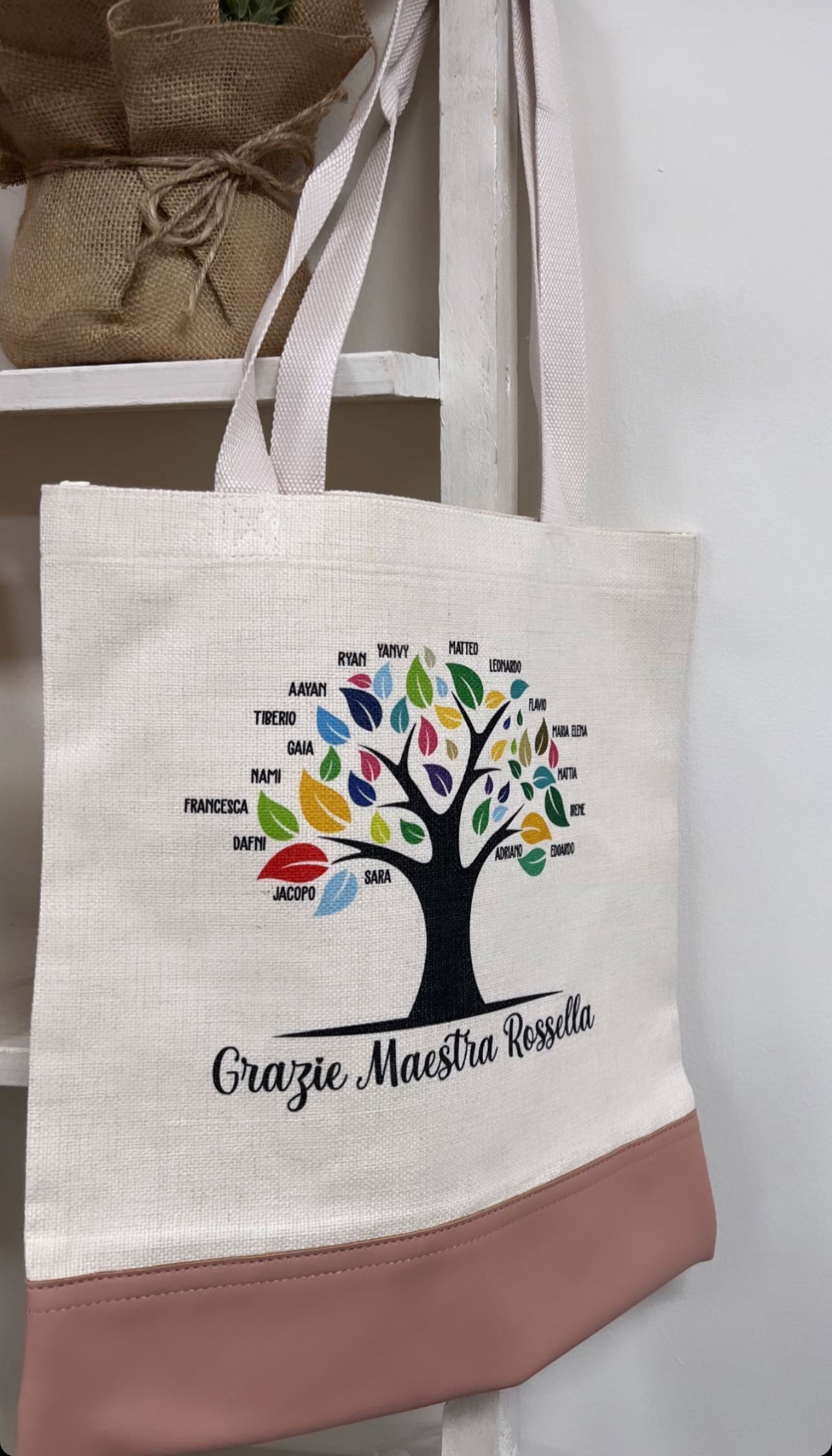 Regali Per Maestra Di Scuola Regali Per Maestra Quinta Elementare Albero Della Vita In Legno, Regalo Maestre Scuola, Regalo Albero Della Vita Tatuaggio Regalo Maestre Fine Anno Personalizzato Bellissima borsa shopper personalizzata regalo per la maestra, con albero della vita, con la frase Grazie maestra ( nome ) per averci insegnato i colori della vita ,la classe e nomi di tutti i bambini Una shopper graziosa , in tessuto cotone canvas, molto robusta e resistente, con inserti in similpelle colorato. Personalizzata con Albero della vita nome maestra, classe e tutti i nomo dei bambini Borsa shopper regalo per la maestra in tessuto cotone canvas, molto robusta con inserti in similpelle; Personalizzata con Albero della vita nome maestra, classe e tutti i nomo dei bambini; Dimensioni 34 cm x 40 cm circa Borsa shopper regalo per la maestra in tessuto cotone canvas, molto robusta con inserti in similpelle