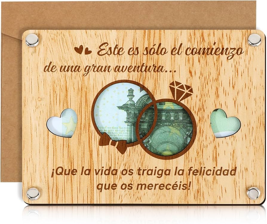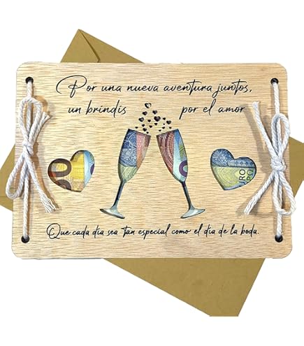 CONTRAXT Ideas Regalos Boda Novios Recien Casados Forma Original Regalo Dinero Tarjeta Madera Sobre Fondo Luna De Miel Matrimonio (Boda