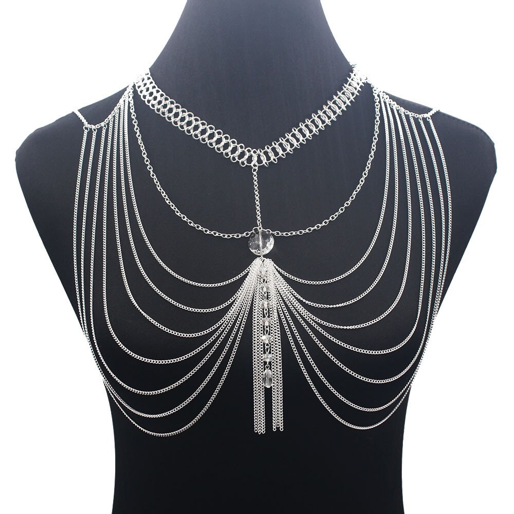 Cubahop Sparkle Crystal Petto Catena Reggiseno Bikini Catena Del Corpo Catena Di Estate Spiaggia Nightclub Gioielli Regolabili Per Le Donne E Ragazze (Argento