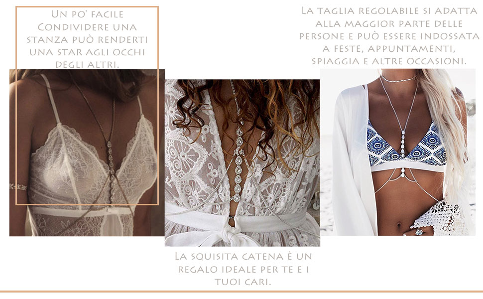 5Conservato in una scatola o in un panno morbido. È anche un regalo perfetto per gli amici, gli amanti o te stesso. Collane Lunghe Cubahop Sparkle Crystal Petto Catena Reggiseno Bikini Catena Del Corpo Catena Di Estate Spiaggia Nightclub Gioielli Regolabili Per Le Donne E Ragazze (Argento Top Argento Donna Sperano anche che indossando la catena del corpo, avranno buona fortuna e saranno favoriti dalla dea della fortuna. Catena del corpo semplice, aggiungere qualche fascino a voi, vi permetterà di divertirsi nella festa. adatto per partecipare a feste in spiaggia, incontri o altre occasioni di svago. 2Questa catena per il corpo sexy è un capo che adorerai indossare. Sexy bikini party body chain per le donne, può evidenziare il tuo corpo perfetto, renderti più sicuro e affascinante nella folla. La catena del petto di strass halter può essere abbinata con bikini, jeans, pantaloni di pelle, abiti, ecc. Informazioni su Carufin Carufin si impegna a fornire prodotti di alta qualità, design originale e un servizio eccellente. 4Tienilo asciutto ed evita di indossarlo quando fai il bagno o nuoti. Funzione: 1Perfetto per feste, serate e occasioni speciali. Il design elegante, lo stile alla moda ti rendono più affascinante.