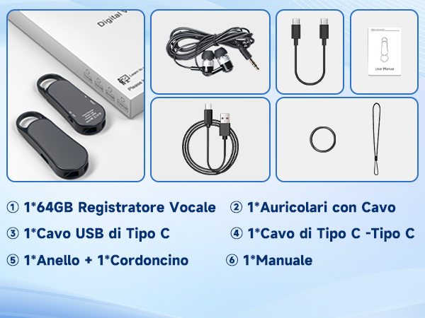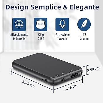 Chip di registrazione intelligente 2159 recentemente aggiornato dotato di tecnologia di riduzione intelligente del rumore DSP, filtra più rumore di fondo rispetto ad altri chip durante la registrazione, un suono più chiaro e realistico Se riscontri problemi, faccelo sapere e il team di supporto post-vendita Howabo risponderà e risolverà il problema tempestivamente entro 24 ore nei giorni lavorativi ⏺ 【Portable & 64GB Enorme Memoria Interna】Misura 6.5*2.2*1cm, pesa 35g, questo registratore vocale da 64GB può memorizzare fino a 910 ore di registrazione, soddisfa le vostre esigenze personali di apprendimento della lingua a lungo termine. 64GB Registratore Vocale (910 Ore di Memoria), Howabo 35 Ore Nuovo ... con Type-C, 1536Kbps Registratore con Riduzione del Rumore 2159 per Colloqui Riunioni ⌛【Registrazione Continua di 35 Ore】Grande batteria integrata da 280 mAh, che può fornire fino a 35 ore (circa 1,4 giorni) di registrazione continua a 160 kbps (1536-32 Kbps, WAV/MP3 opzionale) con solo 1,5 ore di ricarica completa e automaticamente salvare i file quando la batteria è scarica. Howabo 64GB Registratore Vocale Video del venditore Microfono Spia A Distanza 64GB Penna Registratore Vocale Portatile Con 768 ORE Di Registrazione Registratore Vocale Con Recorder Vocale 64gb 🥇【Garanzia di 2 Anni & Elenco Prodotti Howabo】Riceverai: 1 registratore da 64GB, 1 cuffia, 1 cavo USB-C, 1 manuale, tutto quanto sopra è confezionato con sigilli in pellicola. 🔊【Funzionamento Semplice: Registrazione con Un Clic】Fai scorrere il pulsante di registrazione verso l'alto su ON per avviare la registrazione, scorri verso il basso su OFF per salvare e i file verranno nominati con data e ora. Compatibile con PC Windows/MAC o dispositivi Android con funzione OTG, consente di eseguire facilmente il backup, riprodurre ed eliminare le registrazioni Fare riferimento al manuale per come abilitarla) 🔊【Attivazione Vocale Intelligente: Riduci il Silenzio】Quando si registra in modalità di attivazione vocale (1-7 livelli di decibel vocali selezionabili): avvia automaticamente la registrazione quando viene rilevato il suono, mette in pausa quando il suono è debole/silenzioso, riduce i segmenti silenziosi e i sussurri non necessari, e risparmiare efficacemente memoria ed energia.