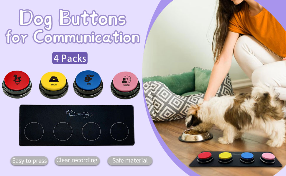 Pulsanti per Cani]Con la funzione audio, la modalità di registrazione predefinita è di 30 secondi, è possibile personalizzare anche altri secondi. Puoi registrare vari comandi come cibo, bevande, giocare, fuori, sì, no, abbraccio e altro ancora, per con USO MULTIPURPOSO: i pulsanti registrabili per cani possono essere utilizzati per registrare i suoni per facilitare la comunicazione con il vostro animale domestico; possono anche essere utilizzati nelle aule scolastiche, per l'apprendimento dei bambini e per i giochi delle feste. È possibile impartire comandi al proprio animale domestico affinché prema i pulsanti corrispondenti per eseguire le attività corrispondenti. FACILE DA USARE: è possibile registrare vari comandi come Sì, No, Cibo, Acqua, Gioco, Aiuto, Sonno e così via. Ogni pulsante è alimentato da 2 batterie AAA da 3V, le batterie non sono incluse! Il Potere Del Cane Buzzer Con Funzione Di Registrazione, 4 Pezzi Di Buzzer Colorati Con Tasti Cane Parole MATERIALE DI ALTA QUALITÀ: il guscio del pulsante di comunicazione per cani è realizzato in materiale ABS di alta qualità, robusto e affidabile.