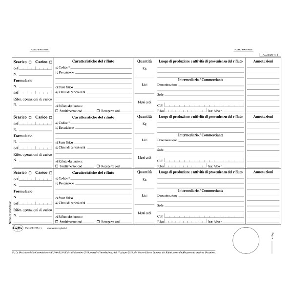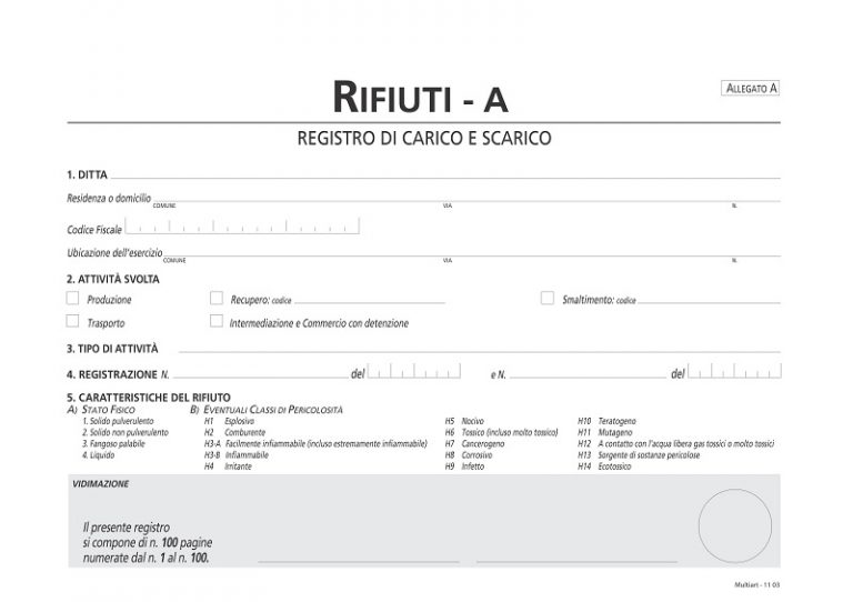 REGISTRO CARICO-SCARICO RIFIUTI DETENTORI MOD. A 100 MODULI DU16582 . Informazioni aggiuntive. Peso: 0,30 kg: Recensioni Ancora non ci sono recensioni. Recensisci per primo REGISTRO CARICO-SCARICO RIFIUTI Annulla risposta. Il tuo indirizzo email non s Formulario Identificazione Rifiuti Amazon.it: Registro Carico Scarico Rifiuti Per Detentori: Modello A Formulario Rifiuti